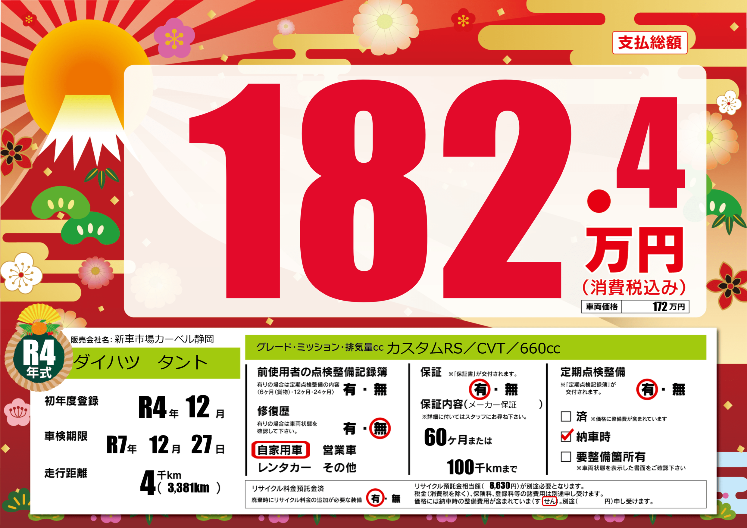 | 走行キロ | 0.4万km | 初年度登録 | R4年12月 |