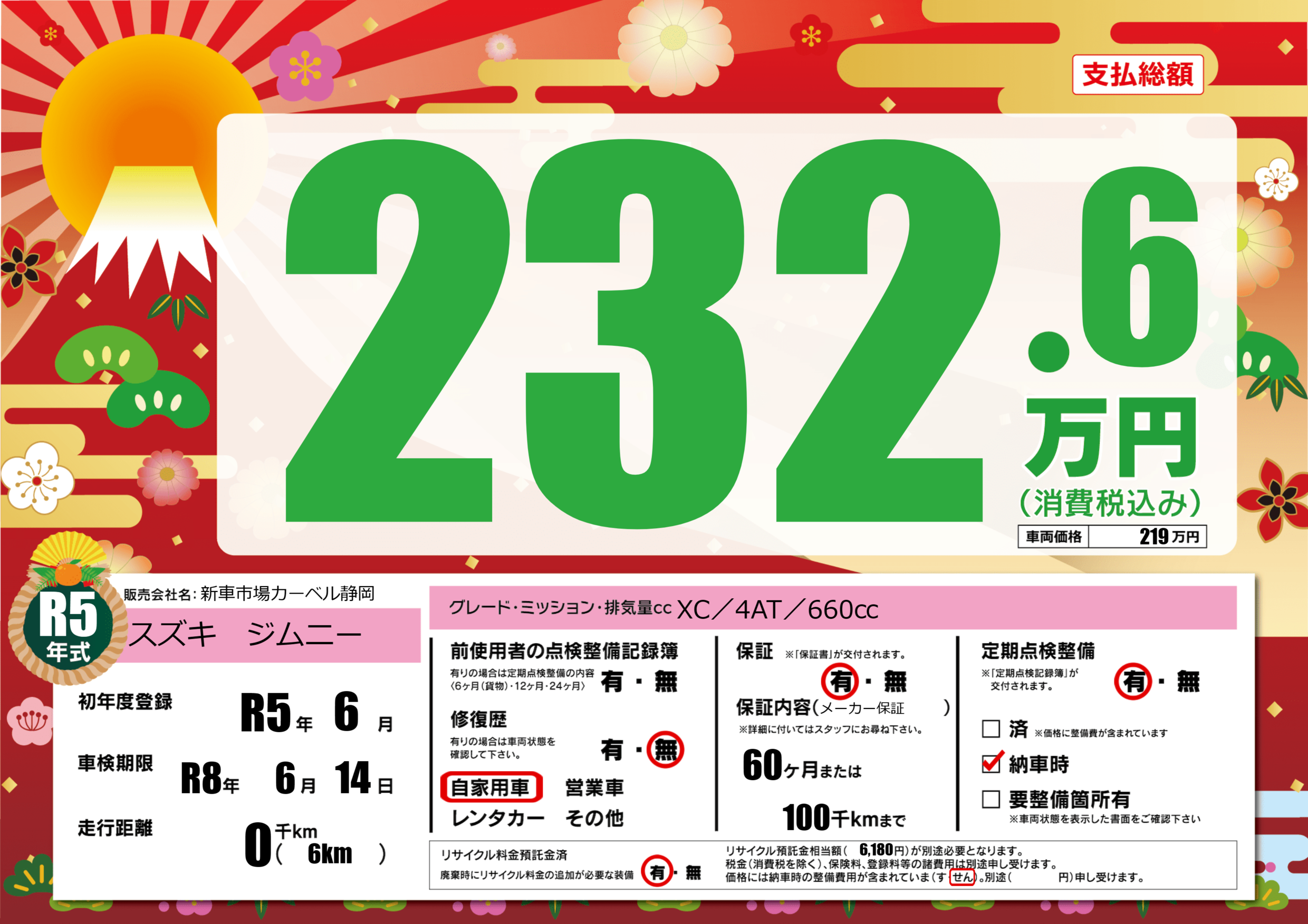 | 走行キロ | - | 初年度登録 | R5年6月 |