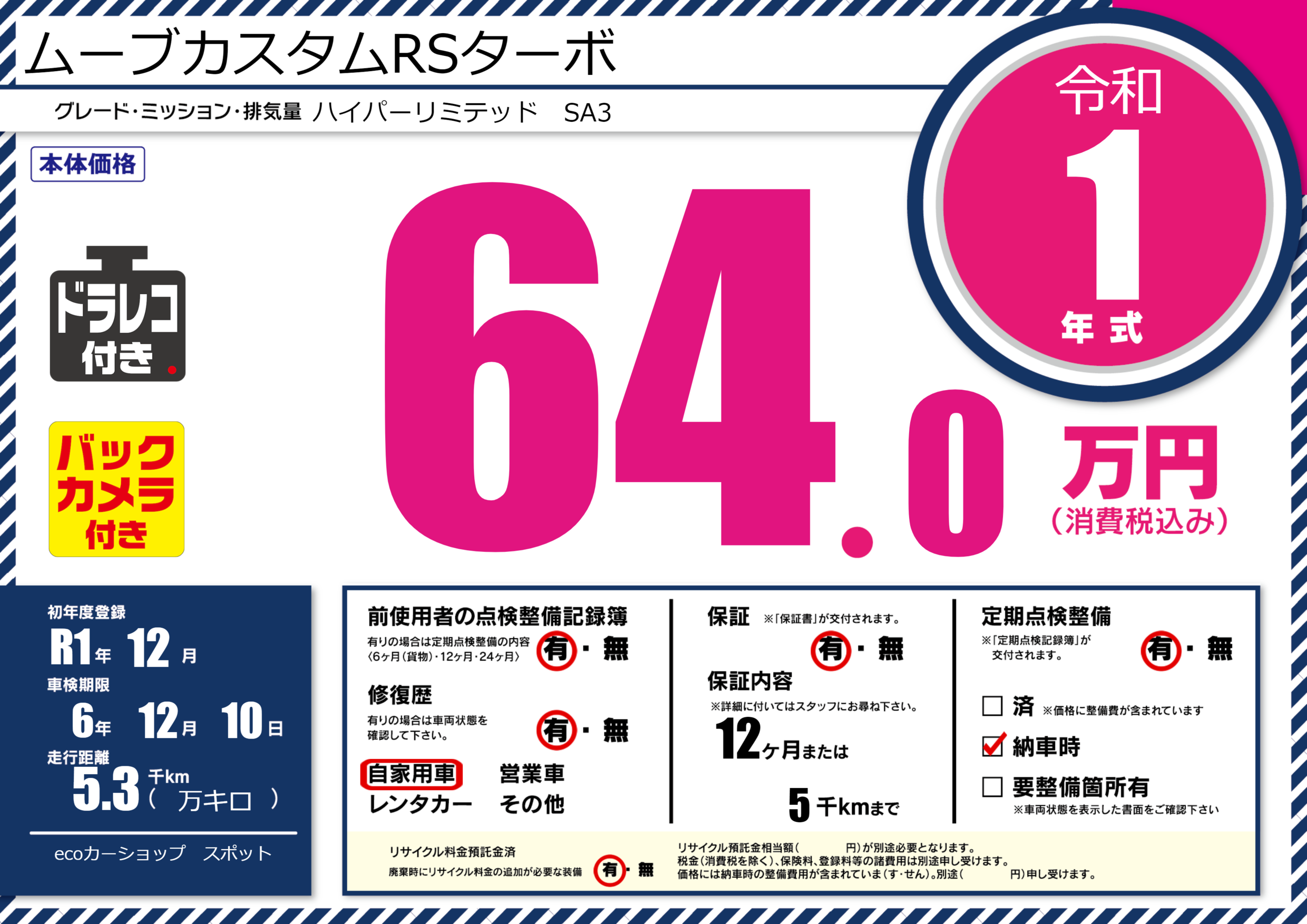 保証付き 保証内容(---) 12ヶ月または(5)千kmまで |