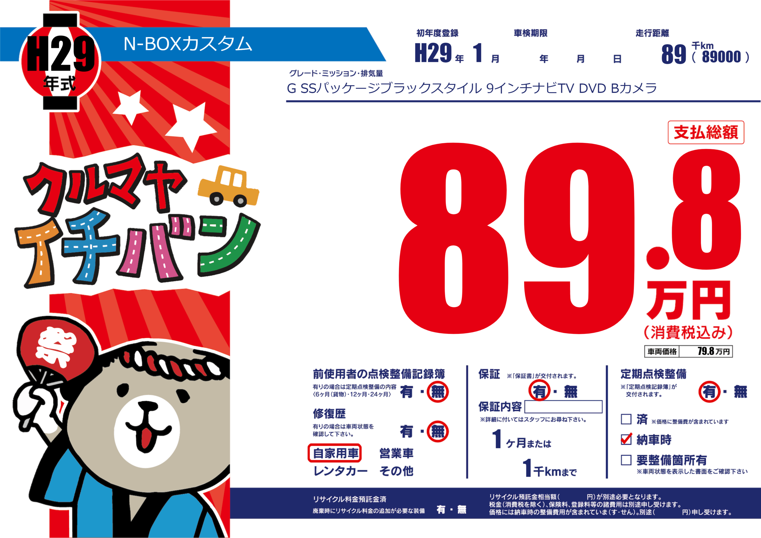 | 定期点検整備 | 定期点検整備あり 納車時あり | ||
