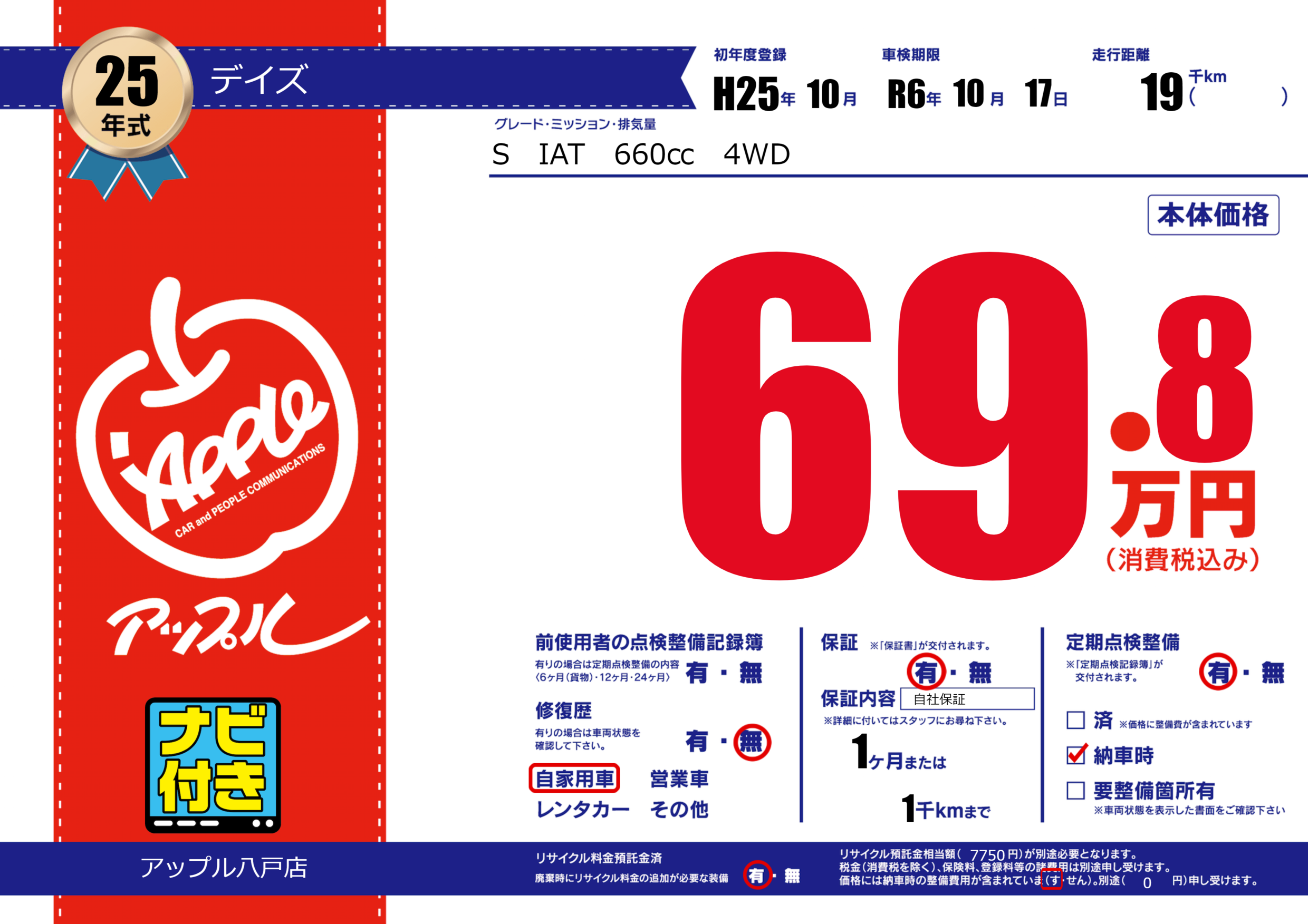 | 車名 | デイズ | グレード ミッション 排気量 |