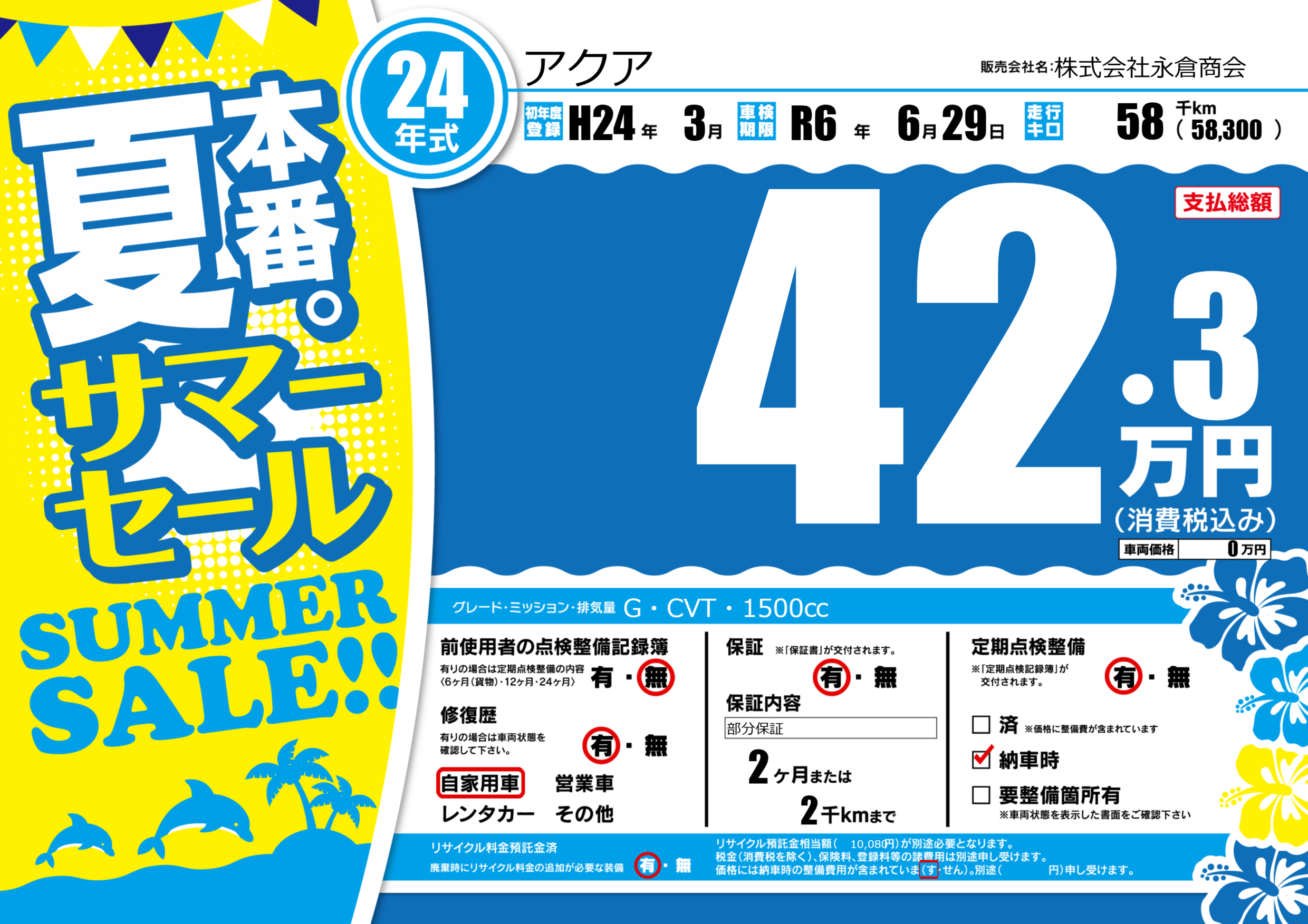 | 走行キロ | 5.8万km | 初年度登録 | H24年3月 |