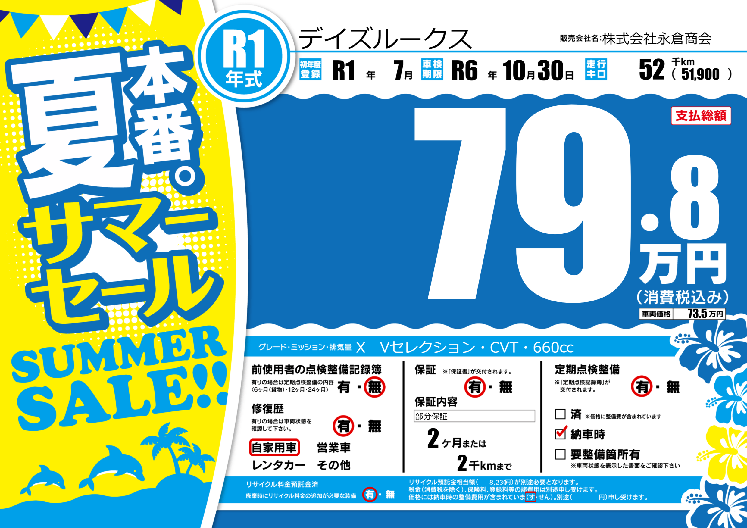 | 走行キロ | 5.2万km | 初年度登録 | R1年7月 |