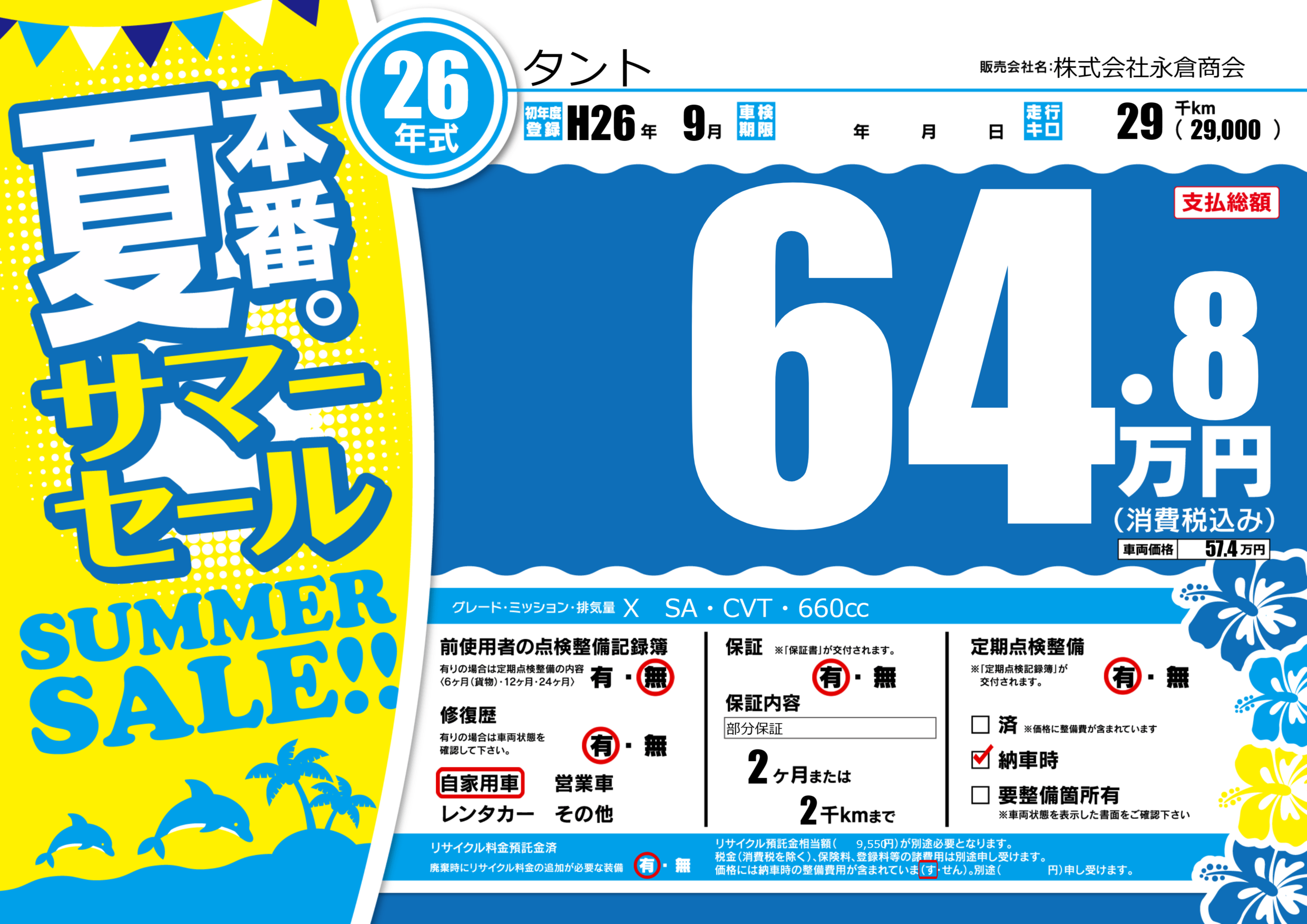 | 走行キロ | 2.9万km | 初年度登録 | H26年9月 |