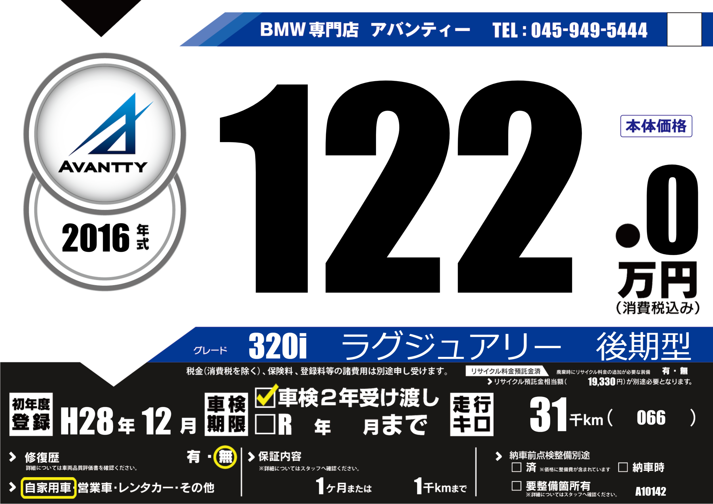 | 走行キロ | 3.1万km | 初年度登録 | H28年12月 |