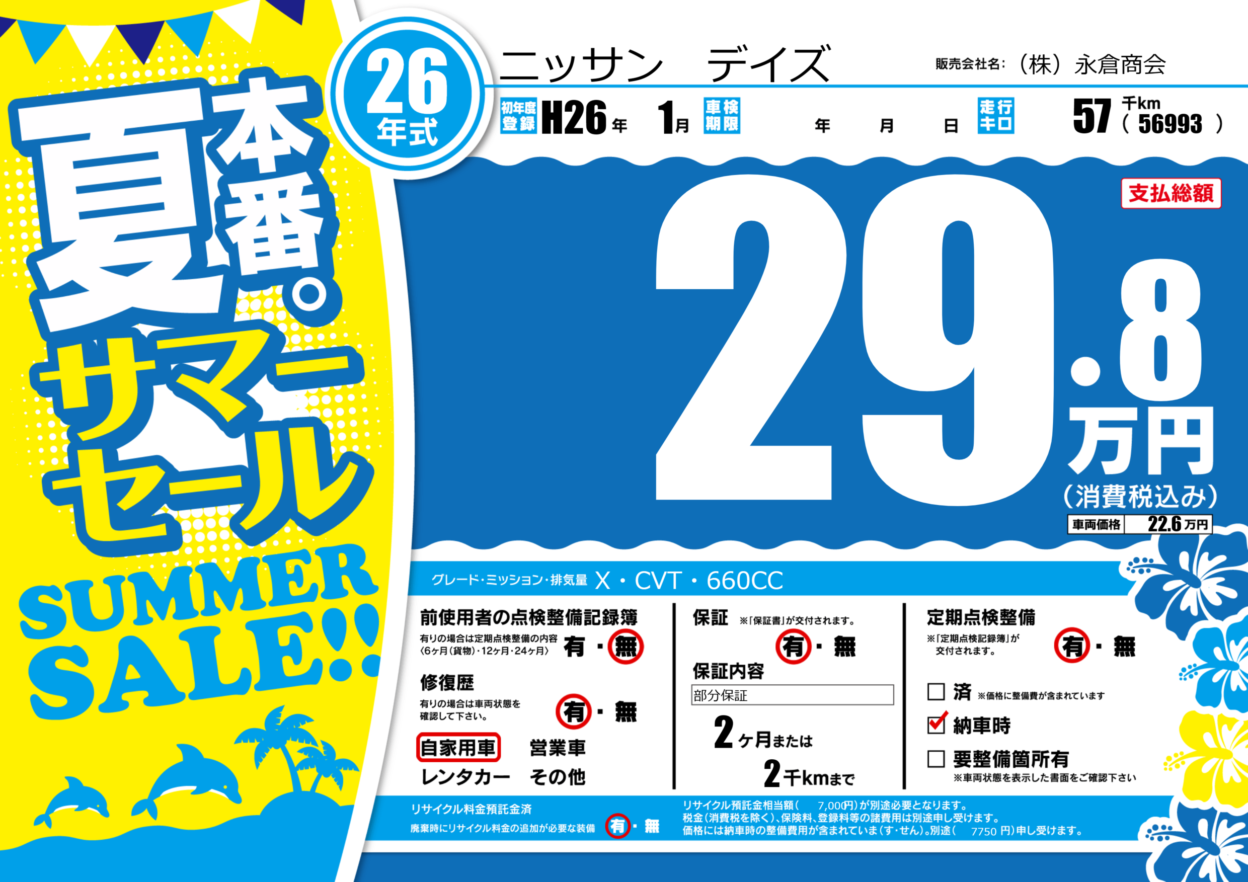 | 車名 | ニッサン デイズ | グレード ミッション 排気量 |