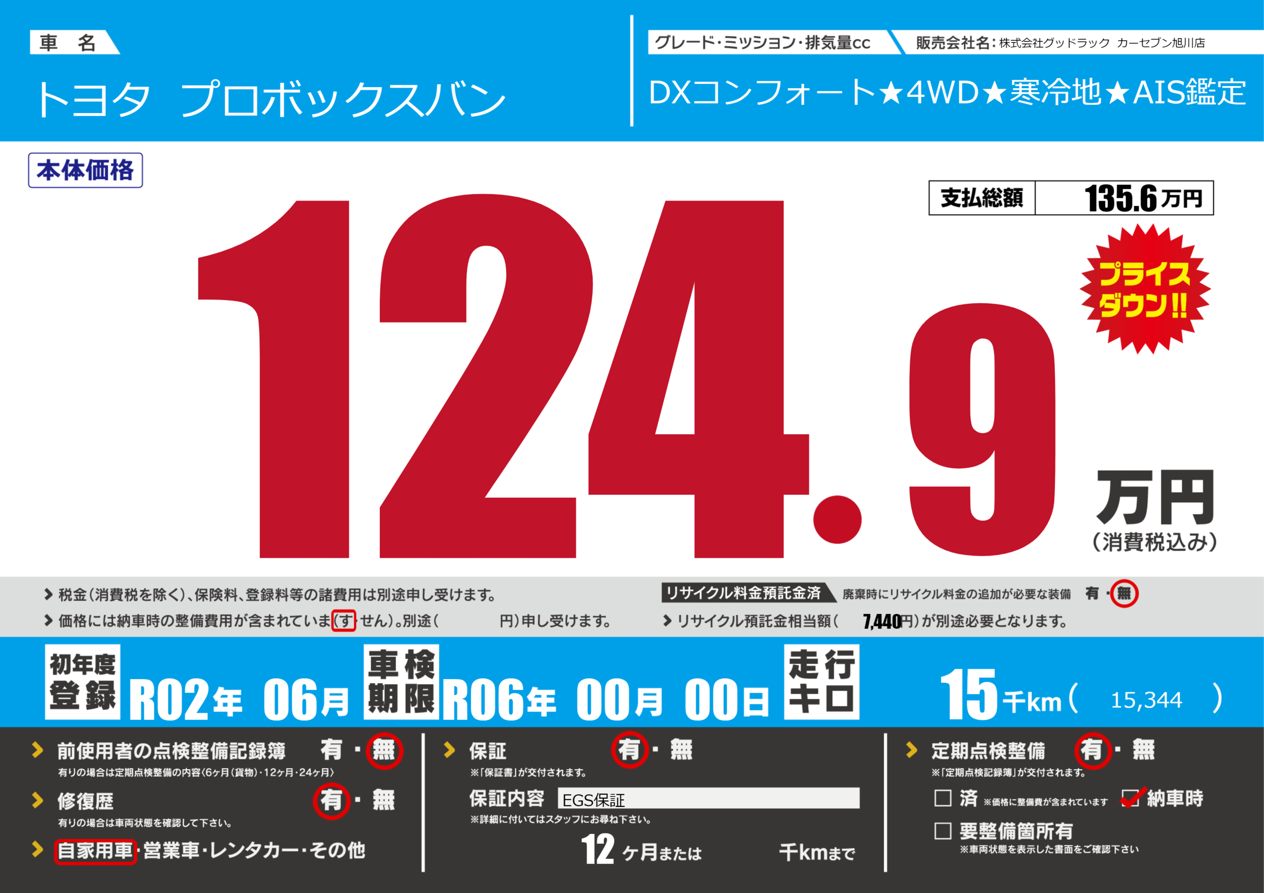 | 車検制限 | R06年 00月 00日 | ||