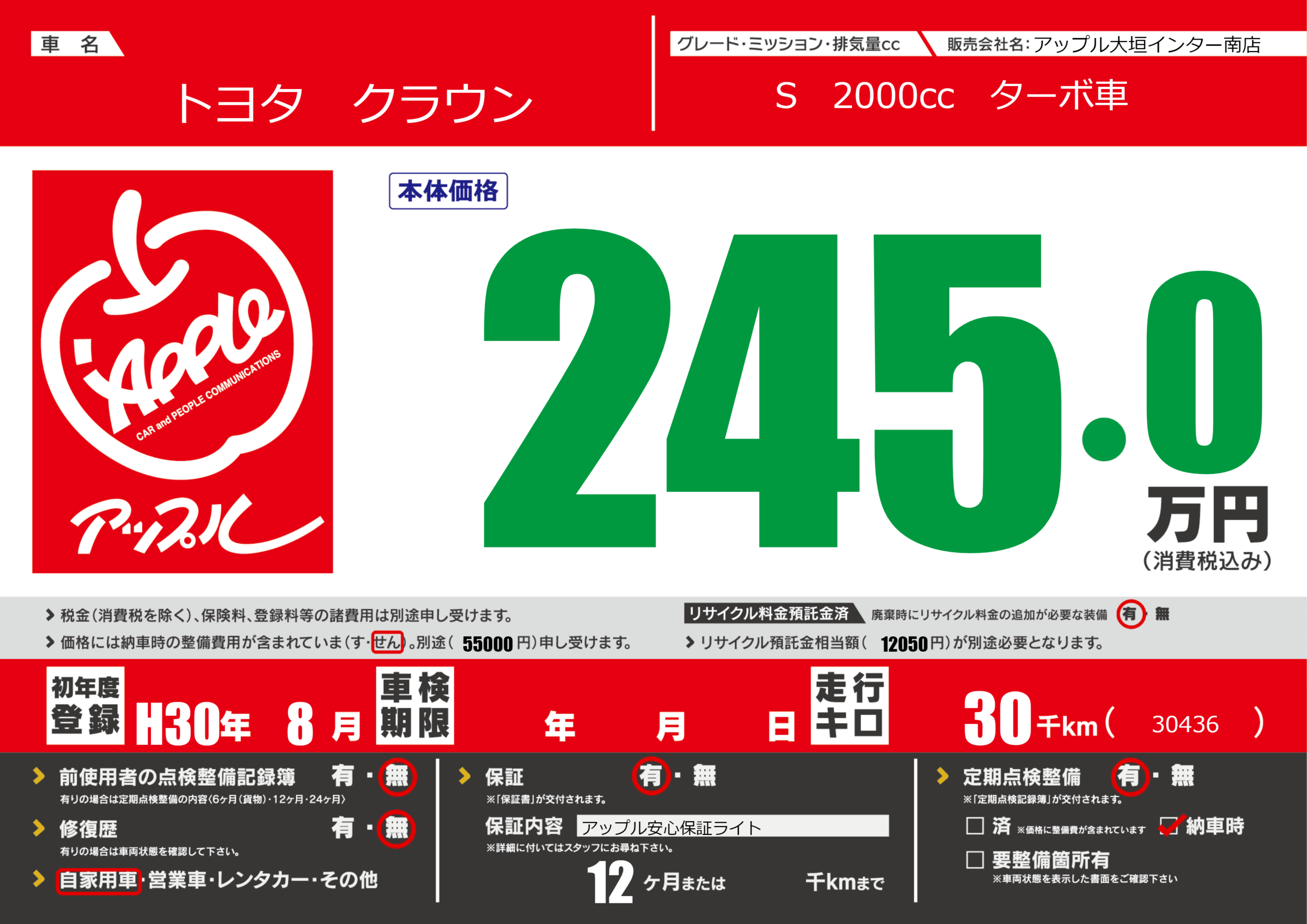 保証付き 保証内容(アップル安心保証ライト) 12ヶ月または()千kmまで |