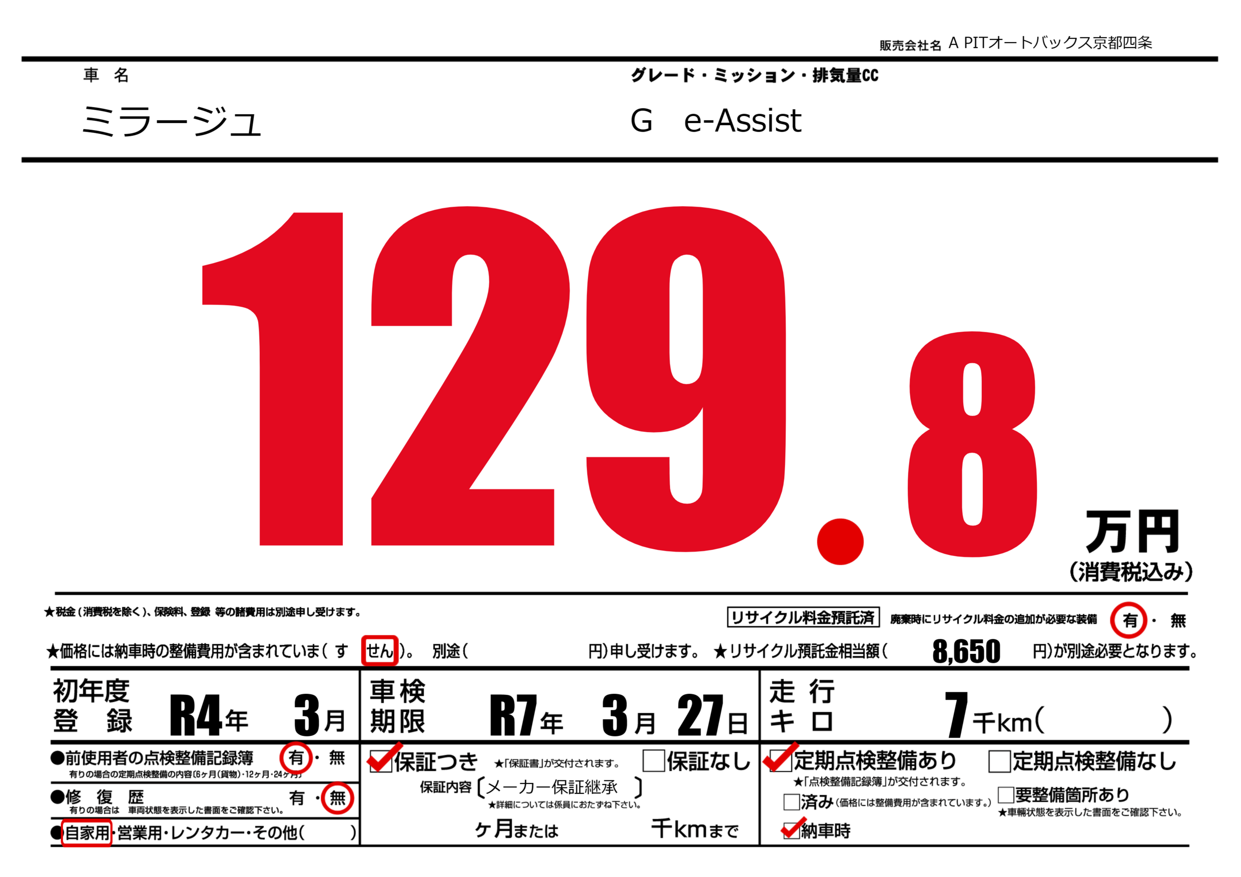 | 走行キロ | 0.7万km | 初年度登録 | R4年3月 |
