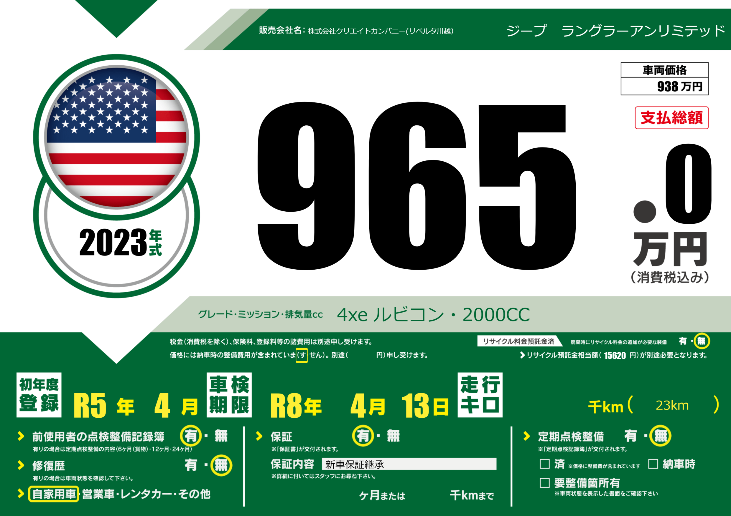 | 初年度登録 | R5年4月 | ||