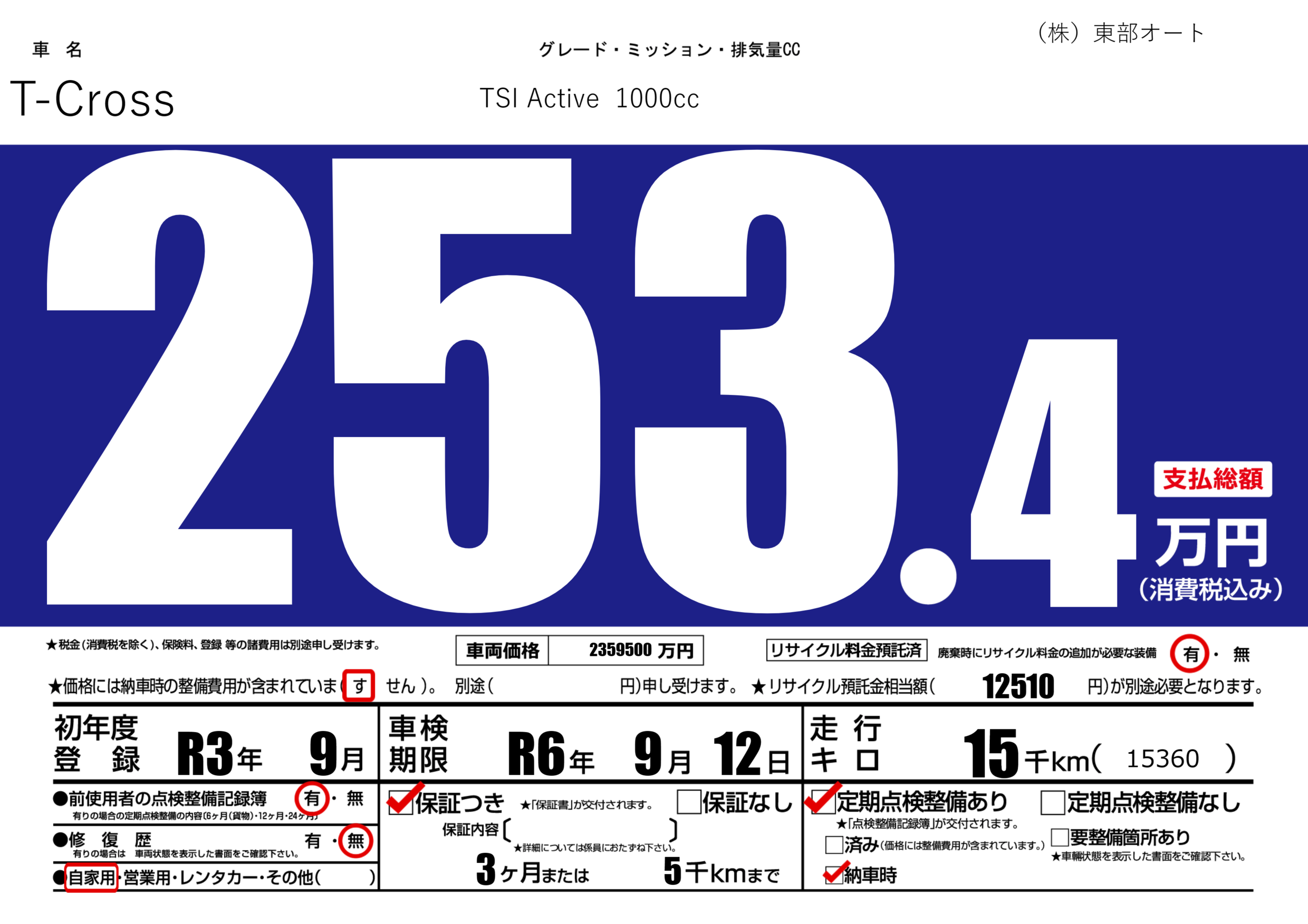 あり | 車検制限 | R6年9月12月 |