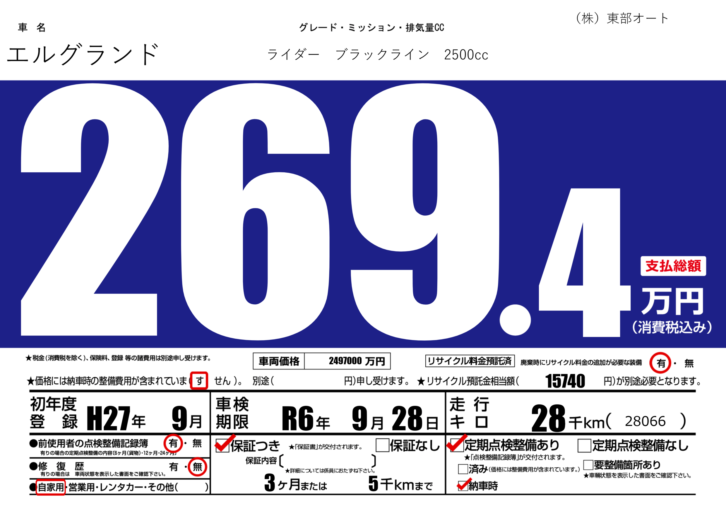 | 初年度登録 | H27年9月 | ||