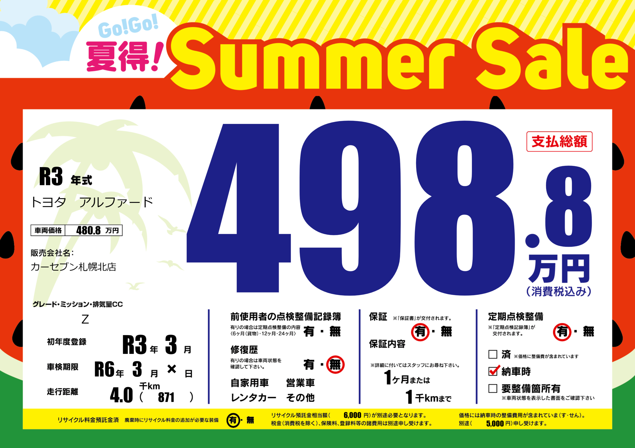 | 走行キロ | 0.4万km | 初年度登録 | R3年3月 |