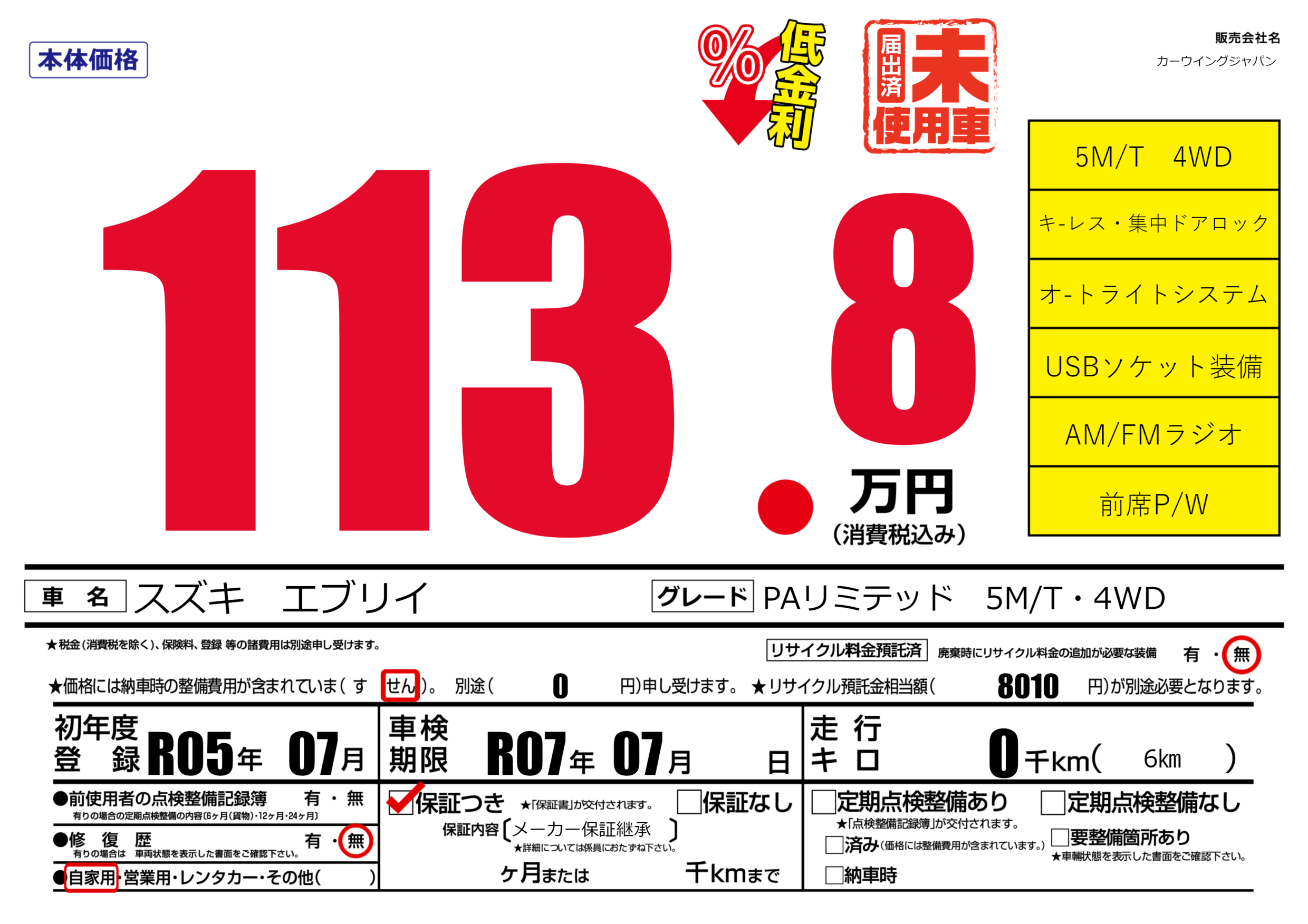 | 走行キロ | - | 初年度登録 | R05年07月 |