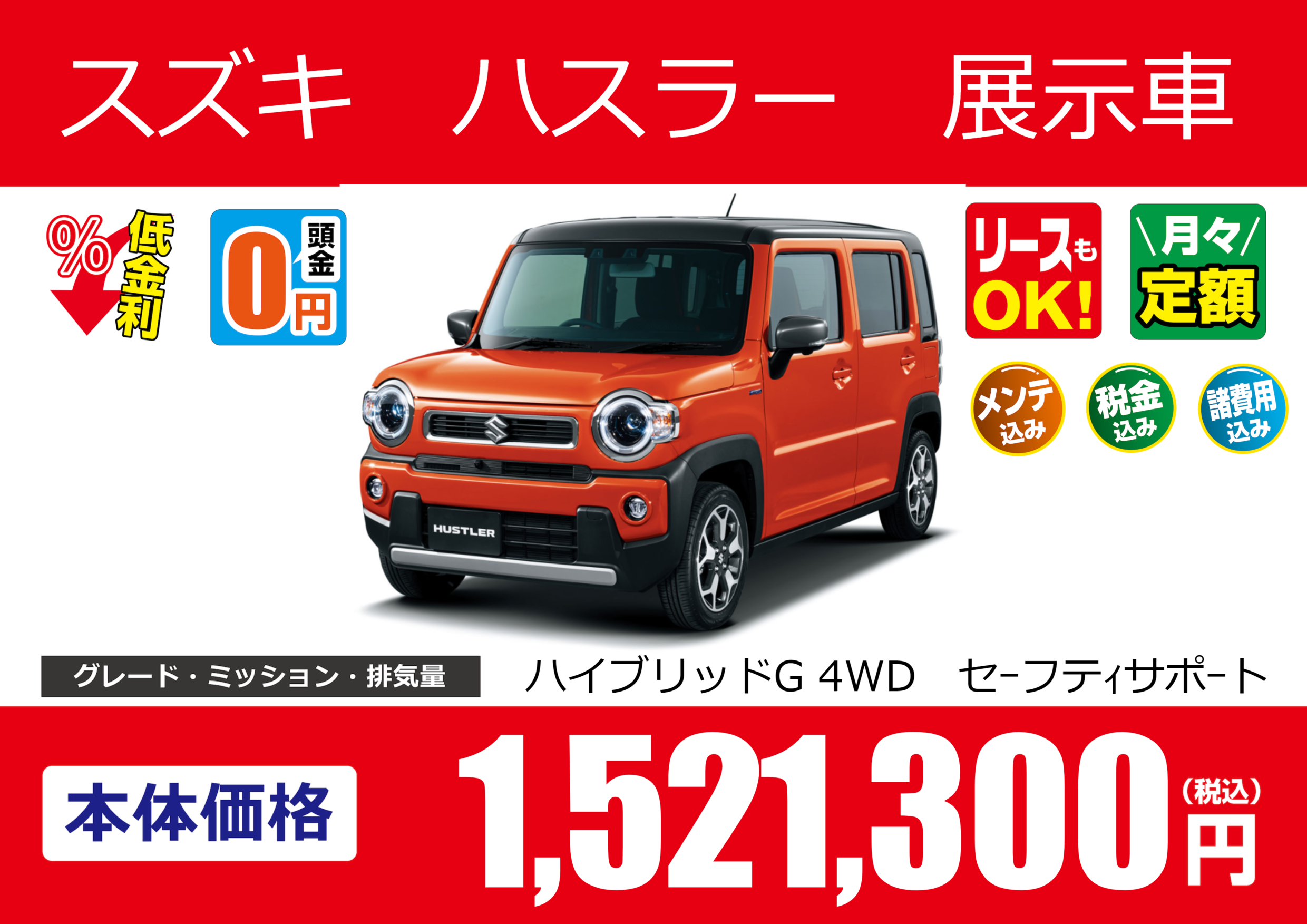 | 車名 | スズキ ハスラー 展示車 | グレード ミッション 排気量 |