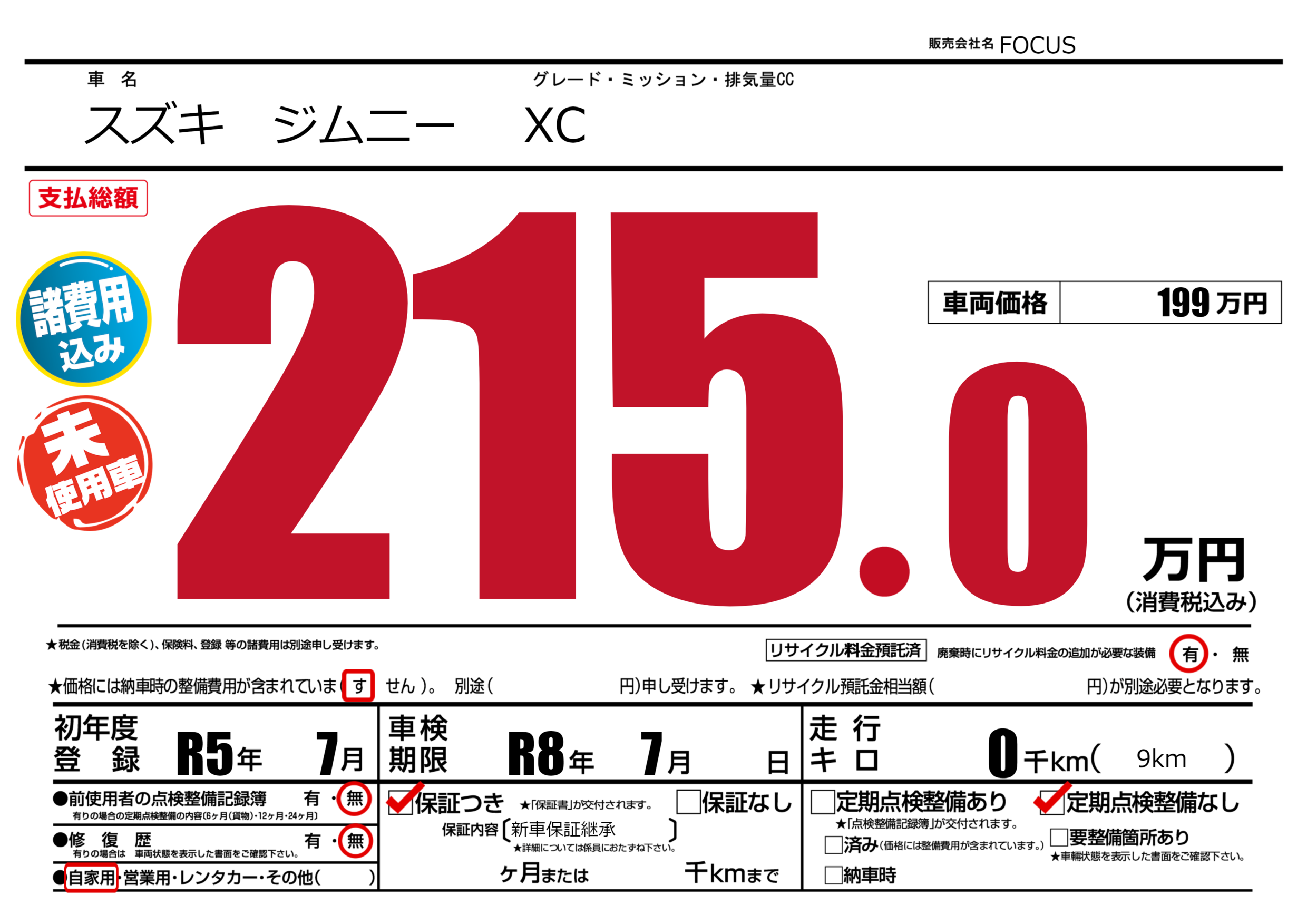 | 走行キロ | - | 初年度登録 | R5年7月 |