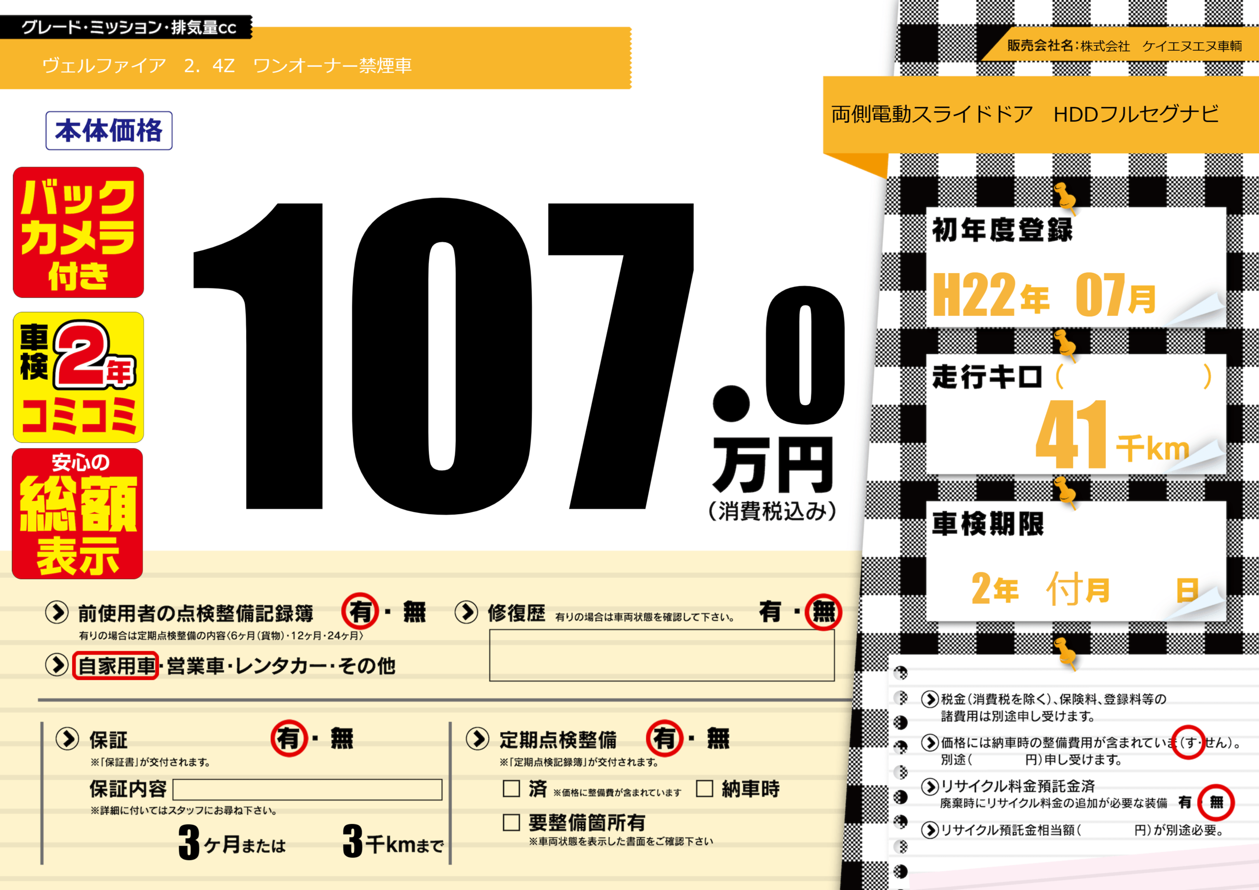 | 走行キロ | 4.1万km | 初年度登録 | H22年07月 |