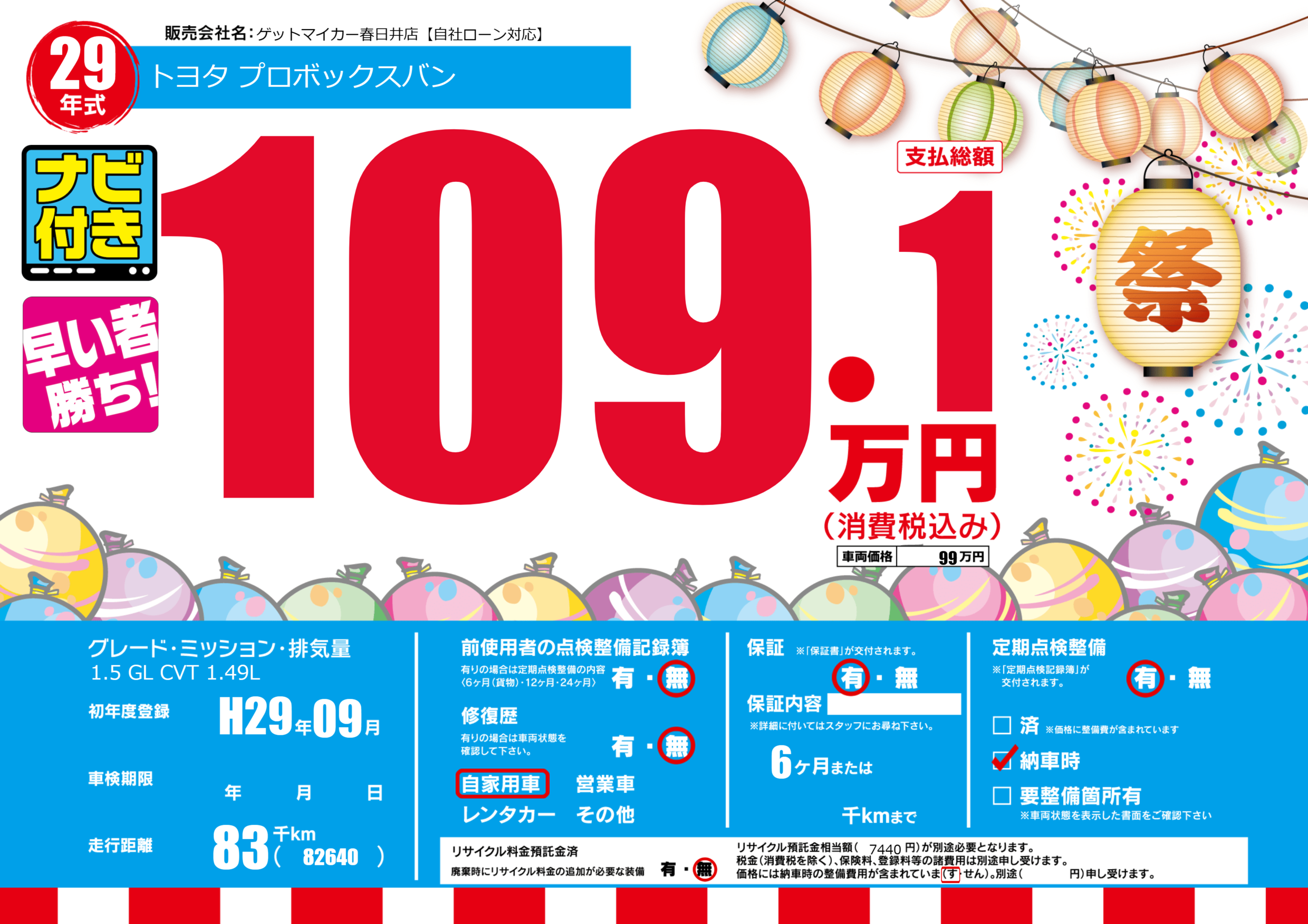 | 定期点検整備 | 定期点検整備あり 納車時あり | ||