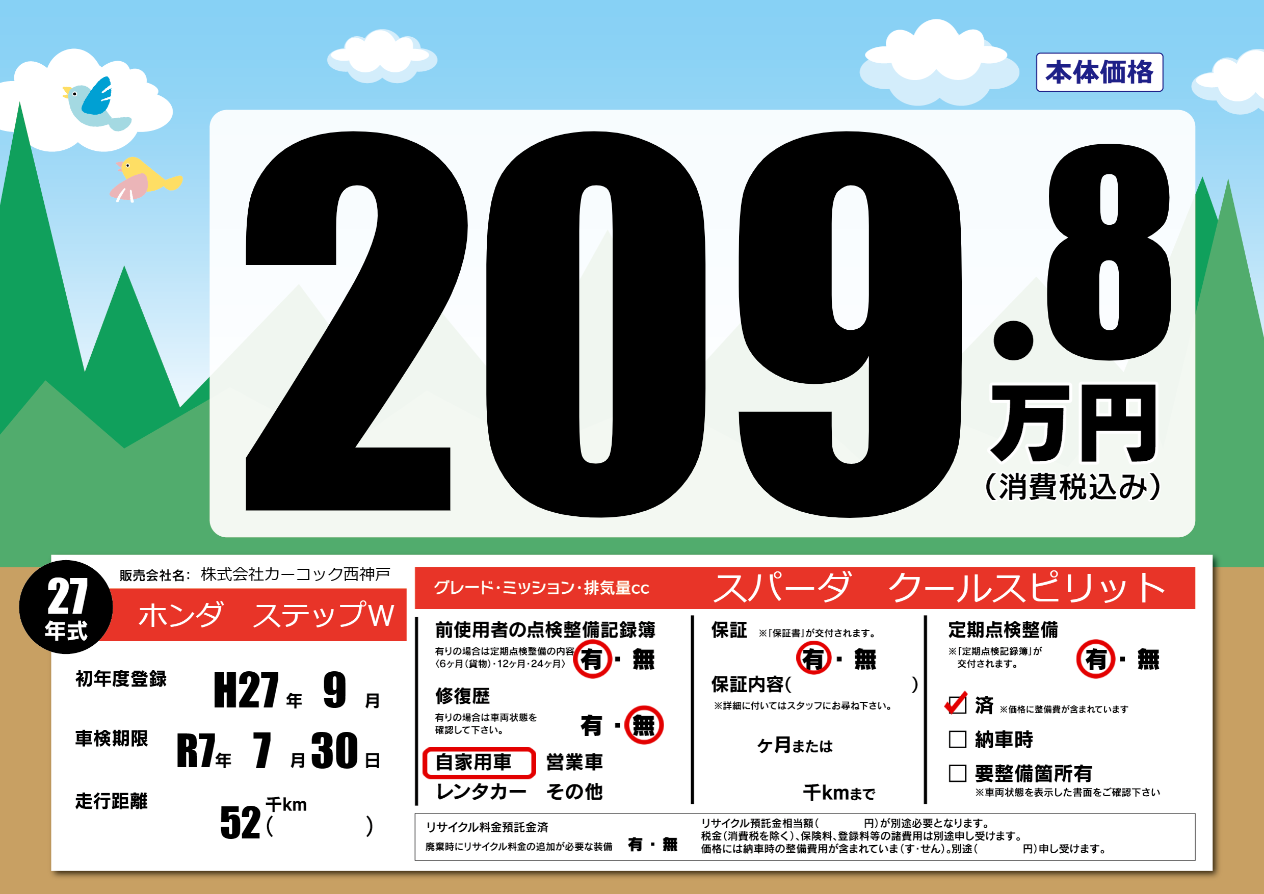 | 車名 | ホンダ ステップW | グレード ミッション 排気量 |