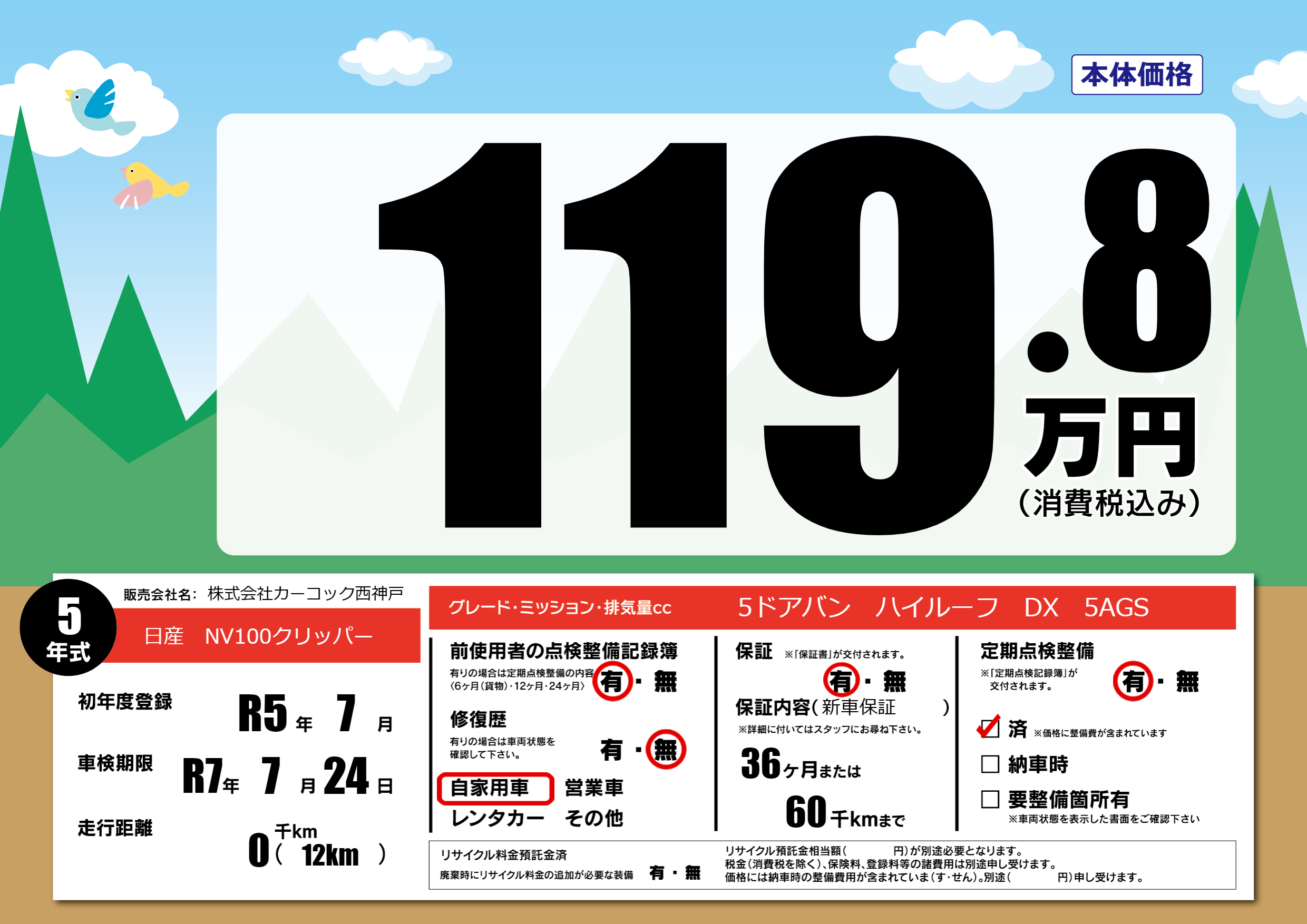| 定期点検整備 | 定期点検整備あり 定期点検整備済み | ||