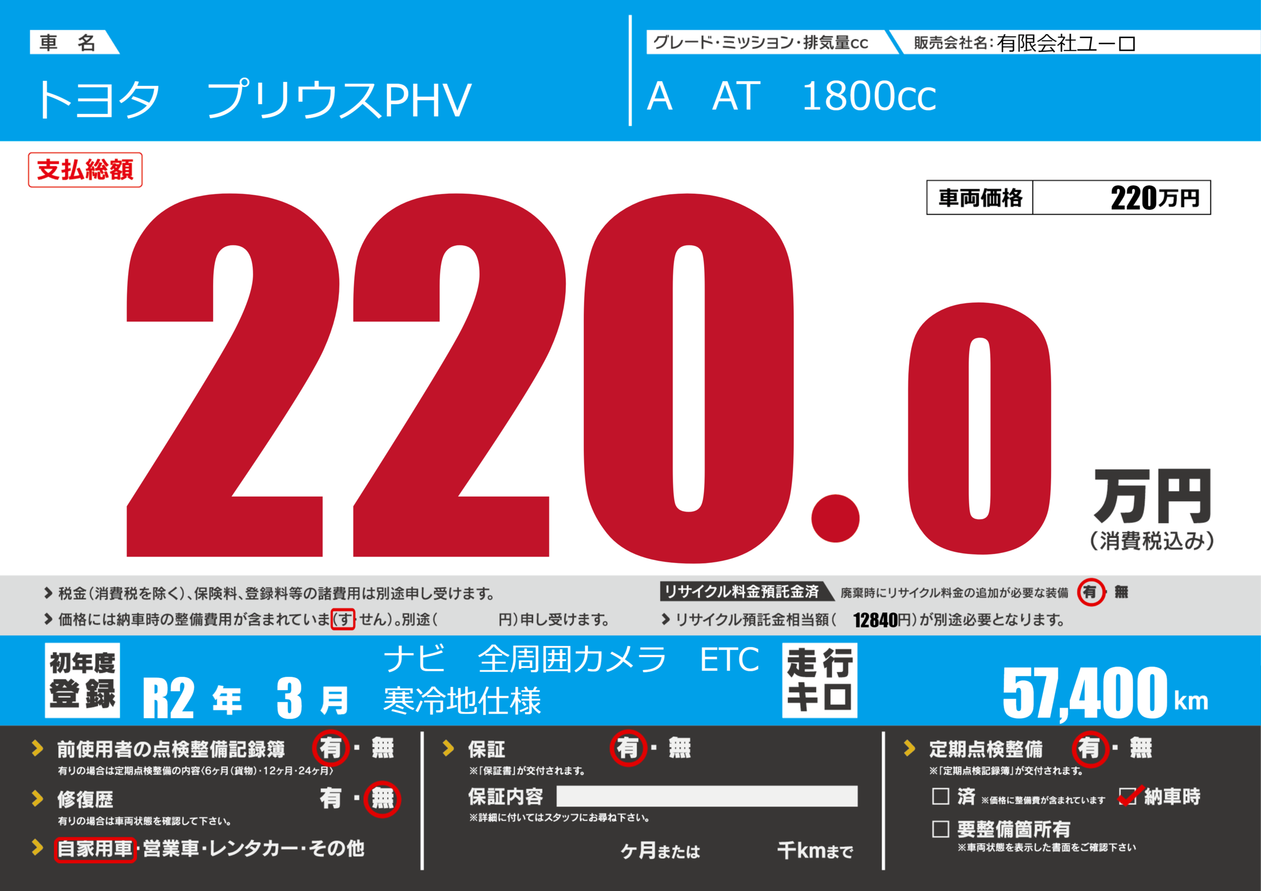 | 車検制限 | - 年 - 月 - 日 | ||
