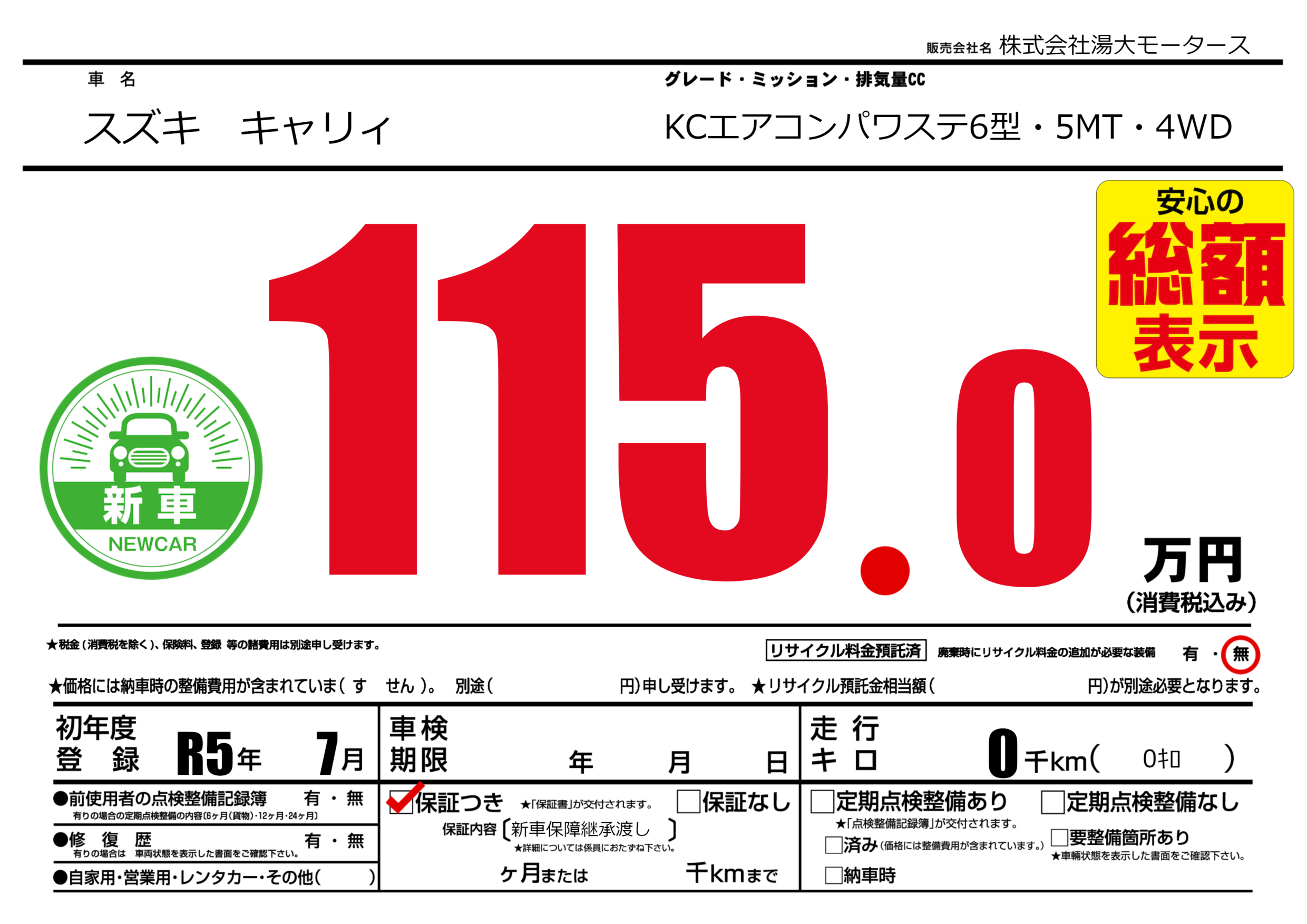 | 車名 | スズキ キャリィ | グレード ミッション 排気量 |