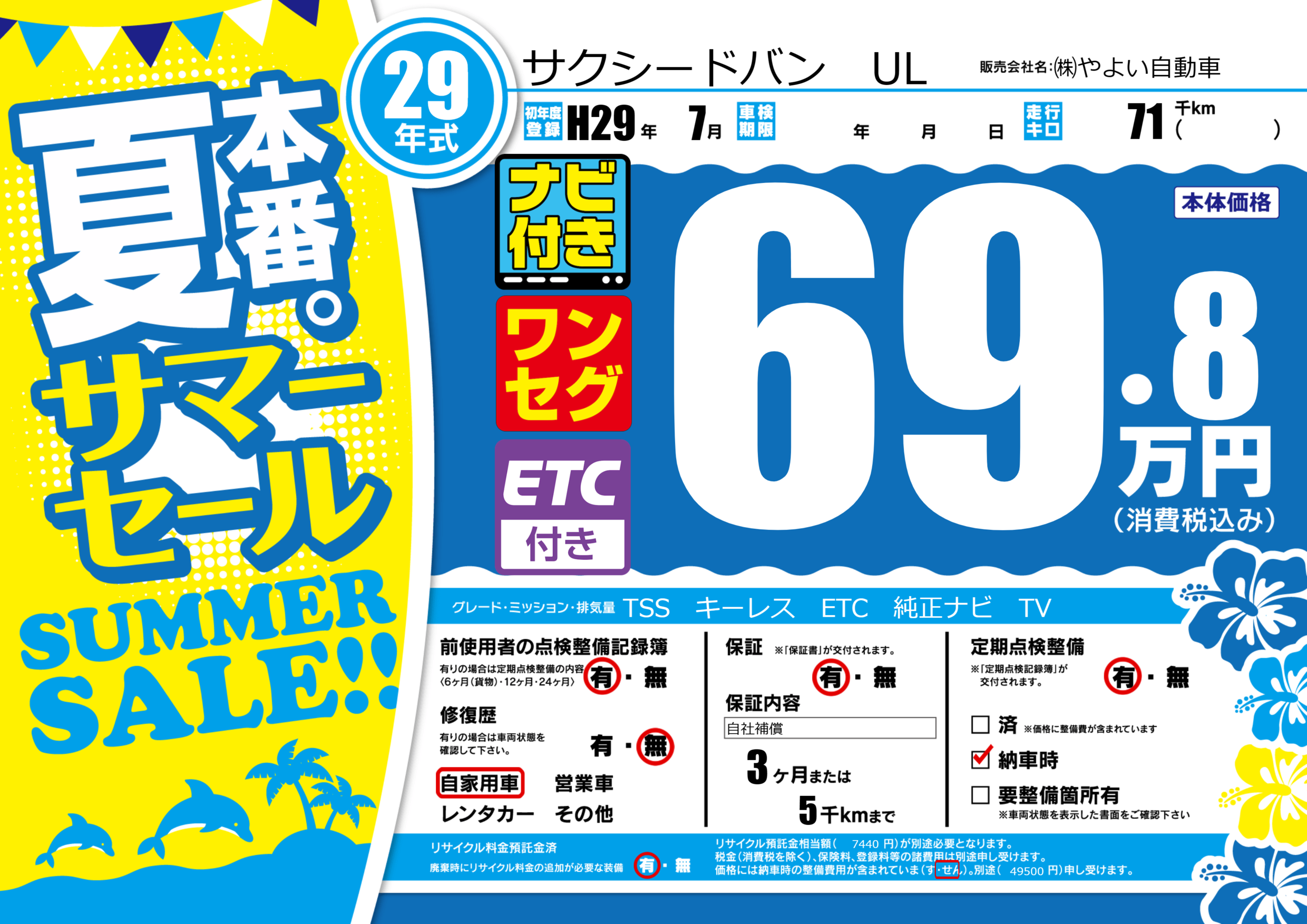 | 走行キロ | 7.1万km | 初年度登録 | H29年7月 |