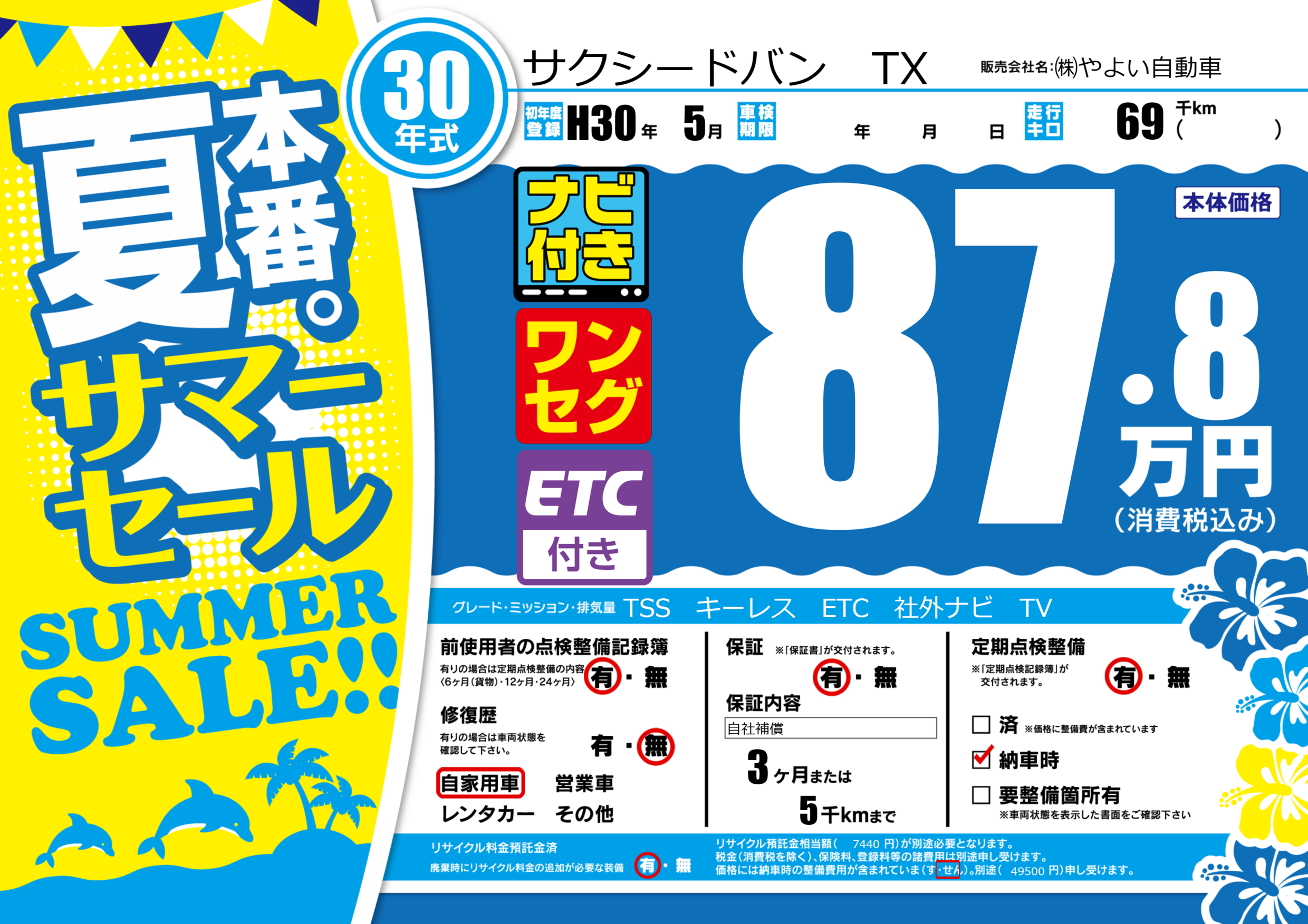 | 走行キロ | 6.9万km | 初年度登録 | H30年5月 |