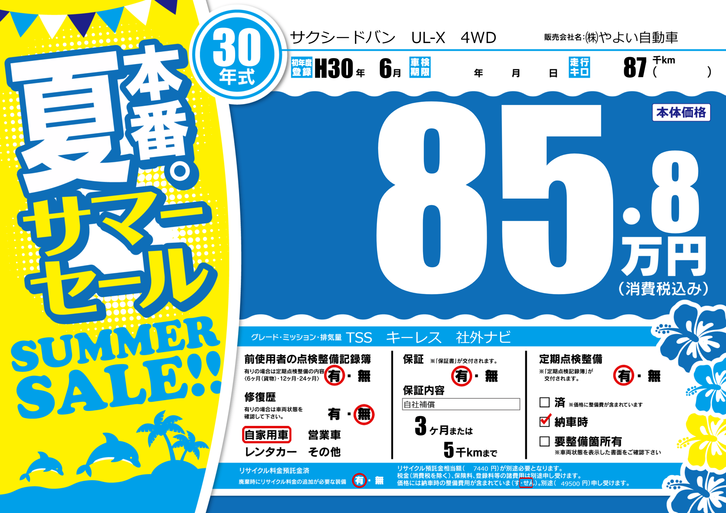 | 走行キロ | 8.7万km | 初年度登録 | H30年6月 |