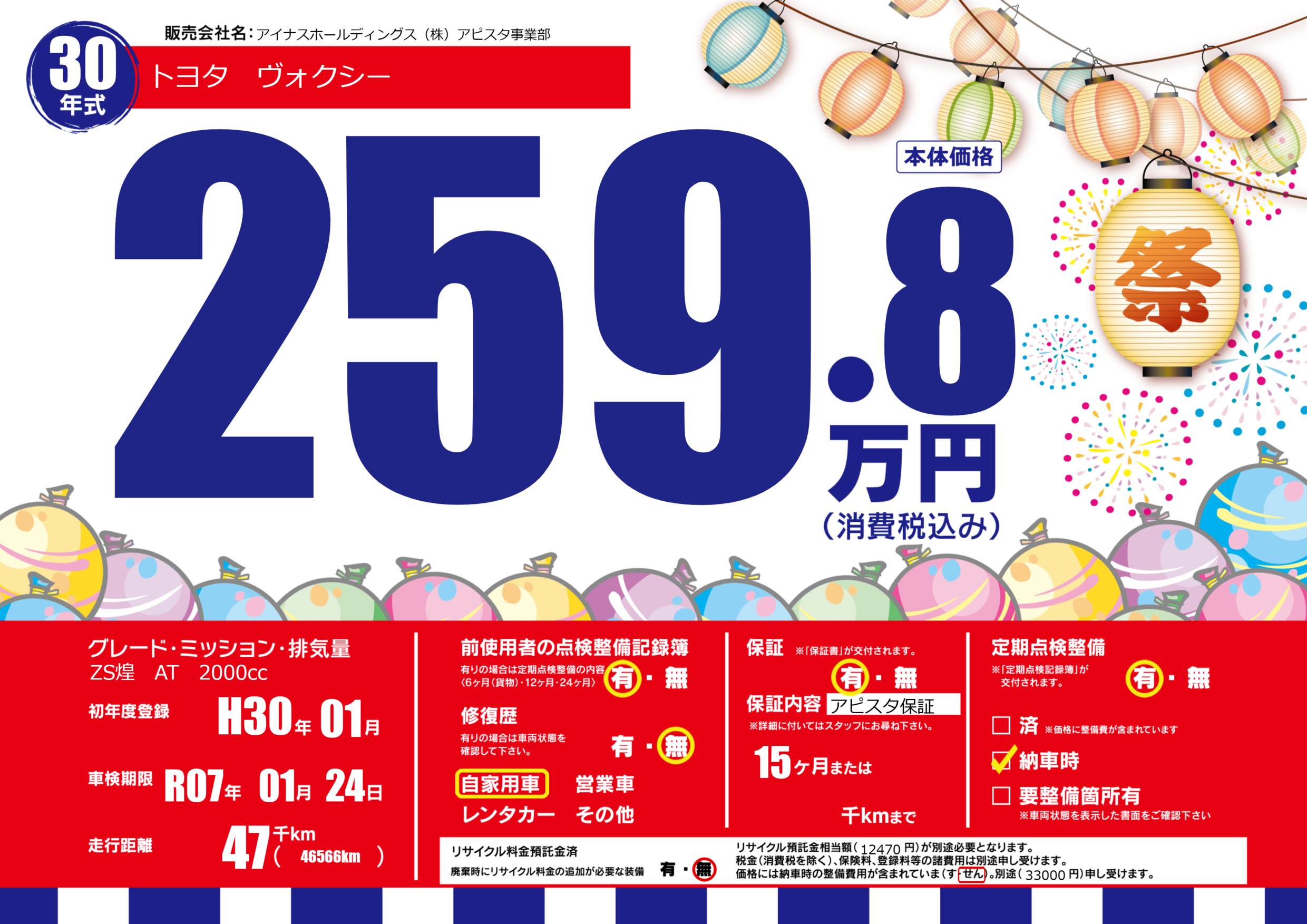 | 車名 | トヨタ ヴォクシー | グレード ミッション 排気量 |