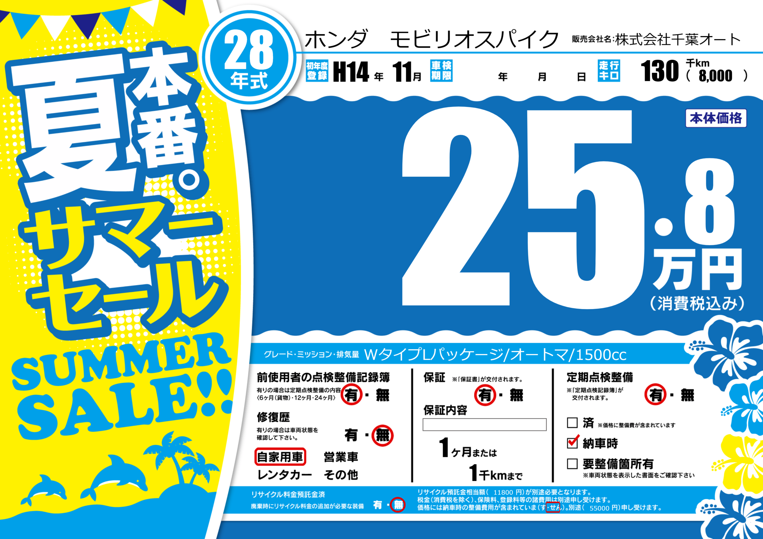 | 走行キロ | 13万km | 初年度登録 | H14年11月 |