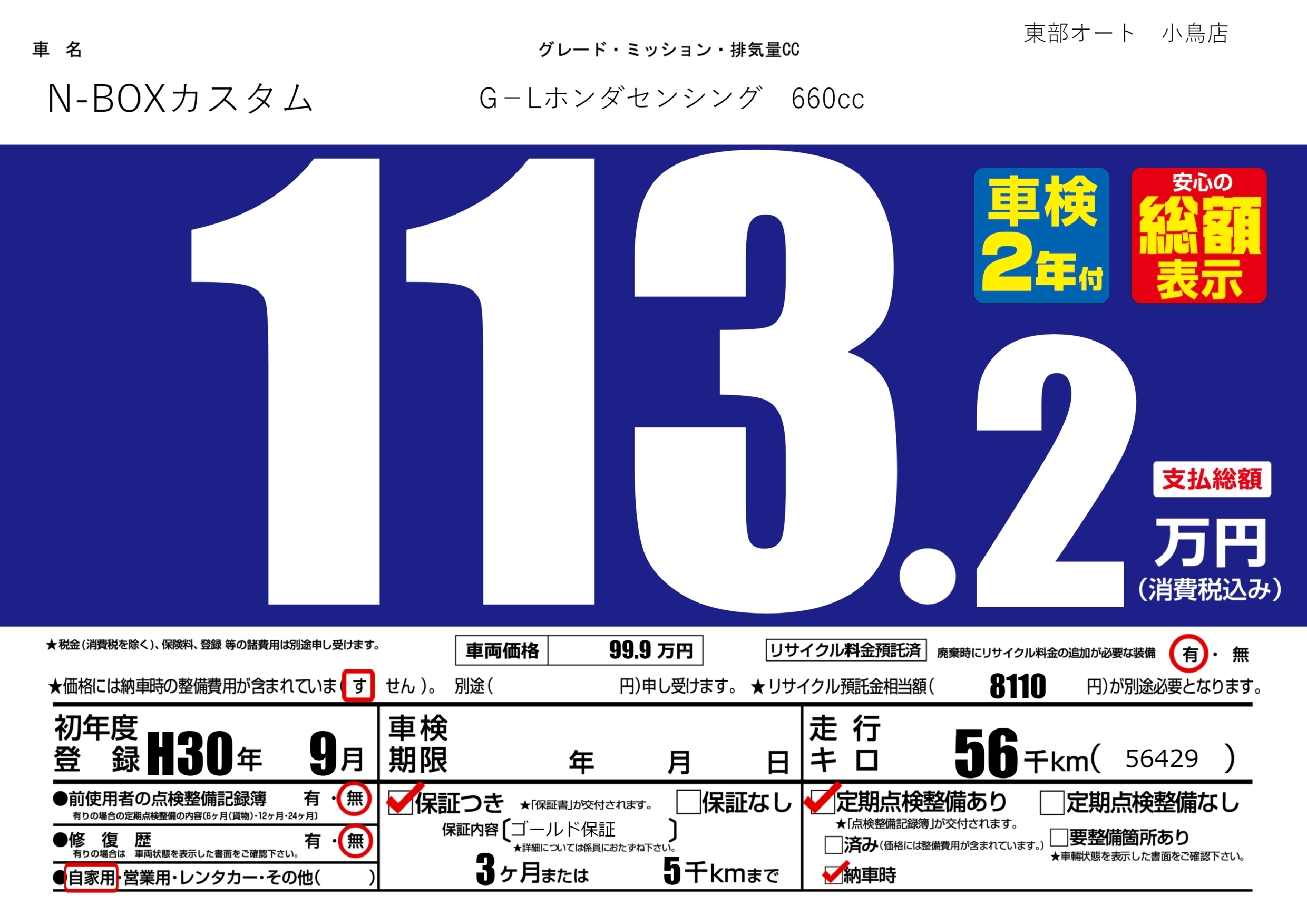 | 定期点検整備 | 定期点検整備あり 納車時あり | ||