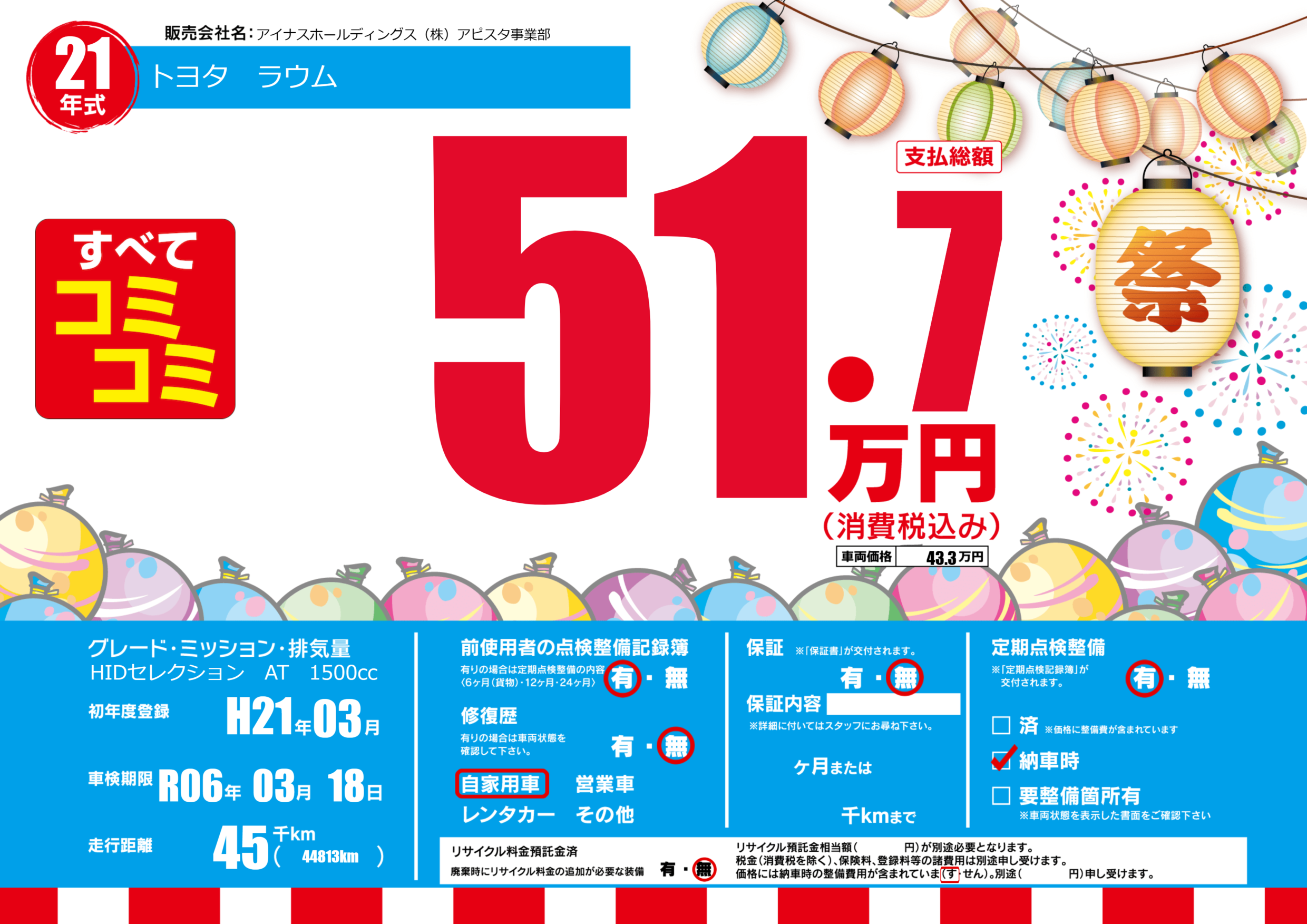 あり | 車検制限 | R06年03月18月 |