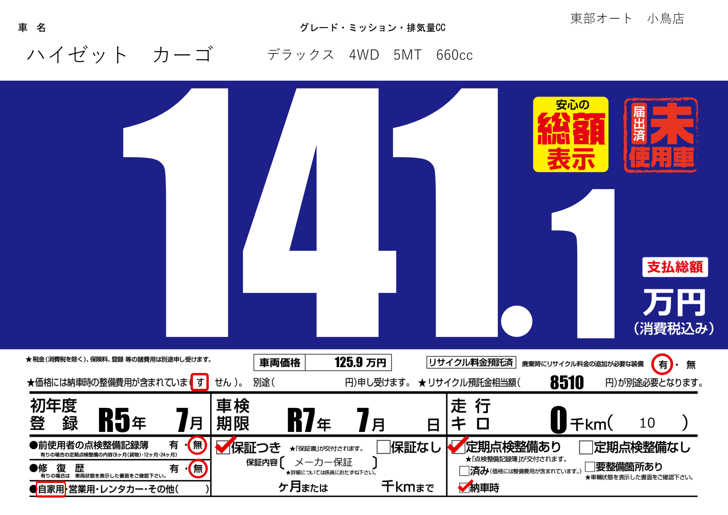 | 車名 | ハイゼット カーゴ | グレード ミッション 排気量 |