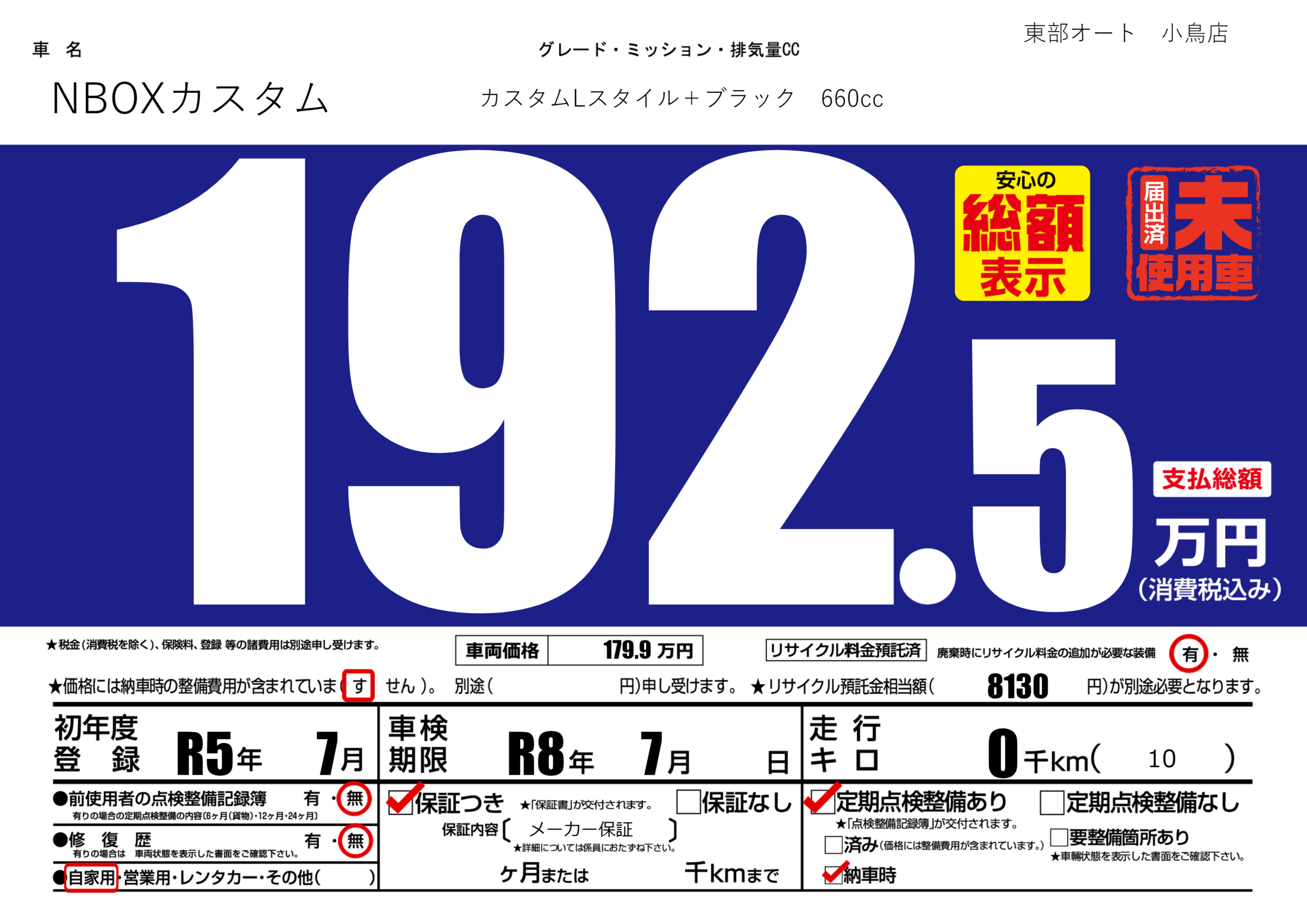| 車名 | NBOXカスタム | グレード ミッション 排気量 |