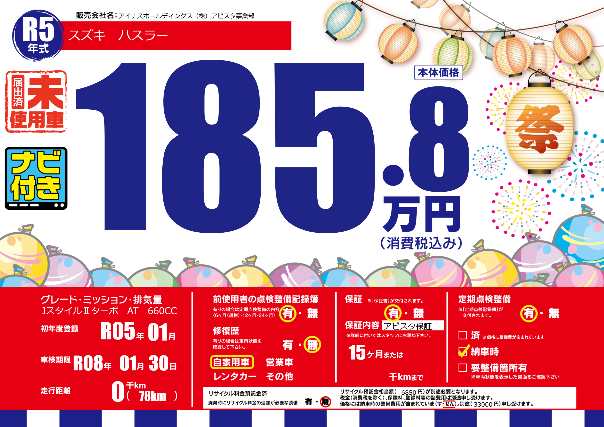 アイナスホールディングス(株)アピスタ事業部の展示車