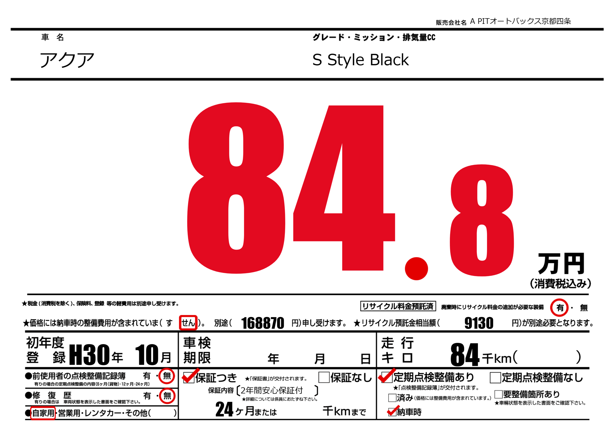 | 定期点検整備 | 定期点検整備あり 納車時あり | ||