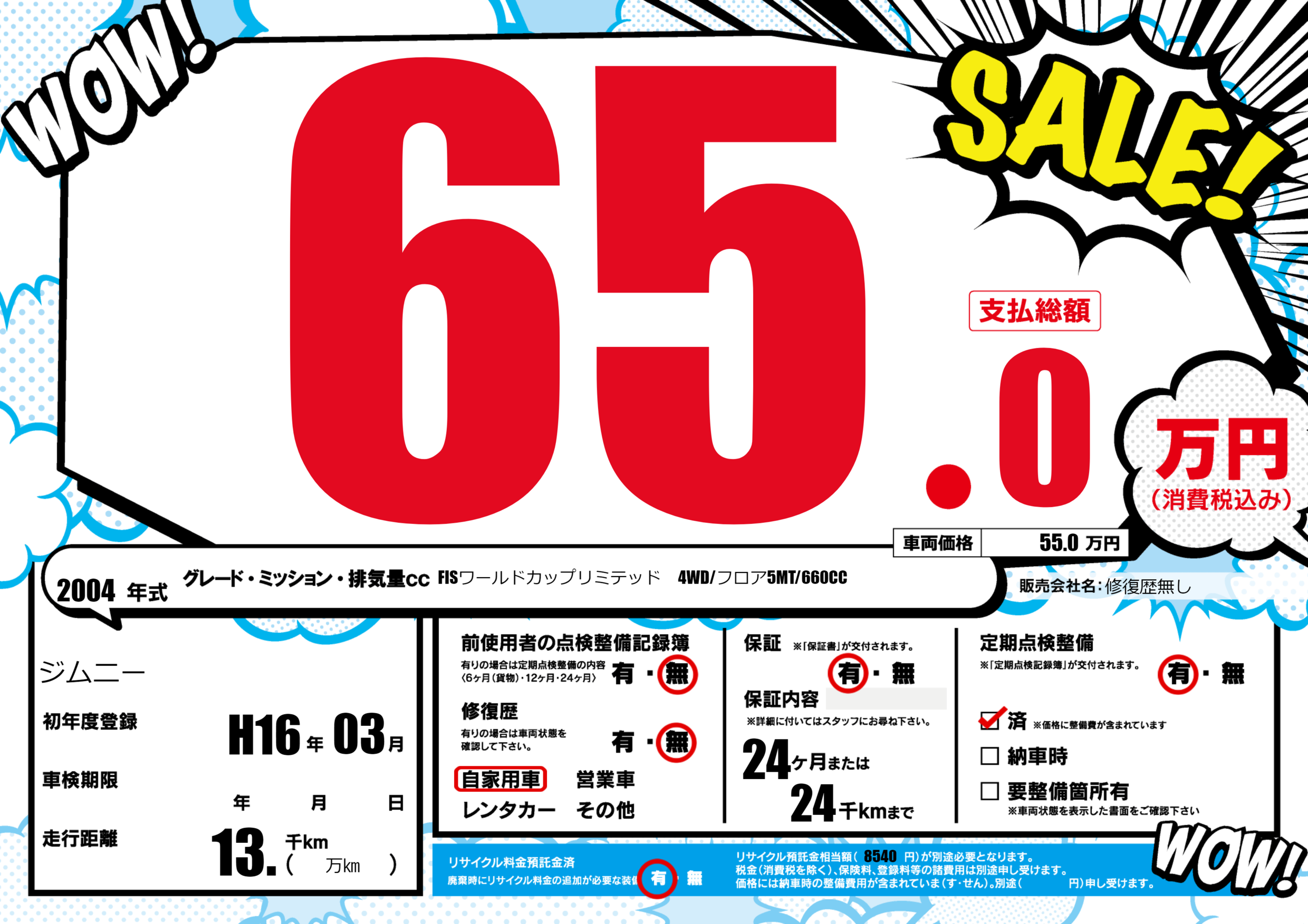 | 定期点検整備 | 定期点検整備あり 定期点検整備済み | ||