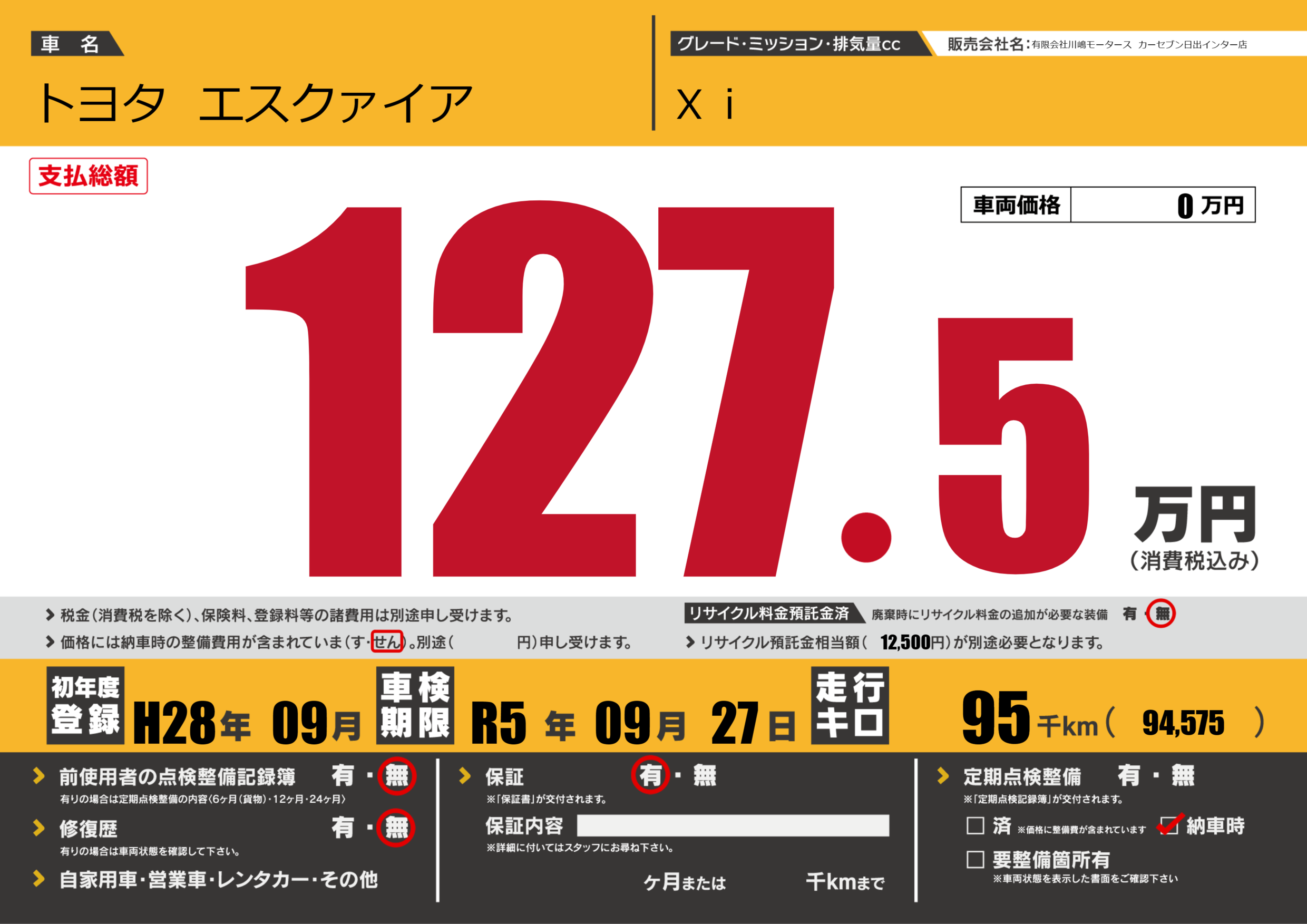 なし | 車検制限 | R5年09月27月 |