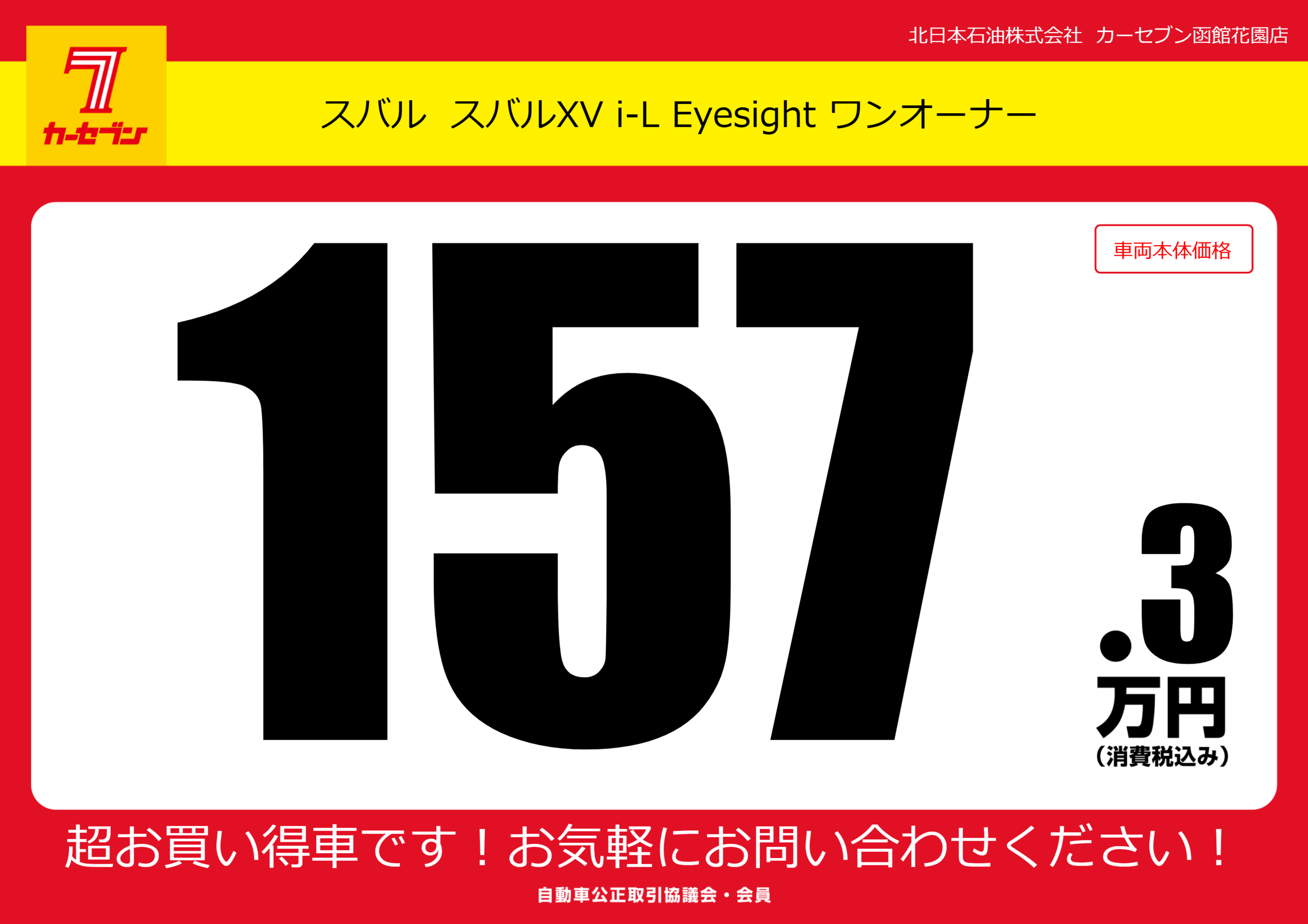 | 車名 | スバル スバルXV i-L Eyesight ワンオーナー | グレード ミッション 排気量 |