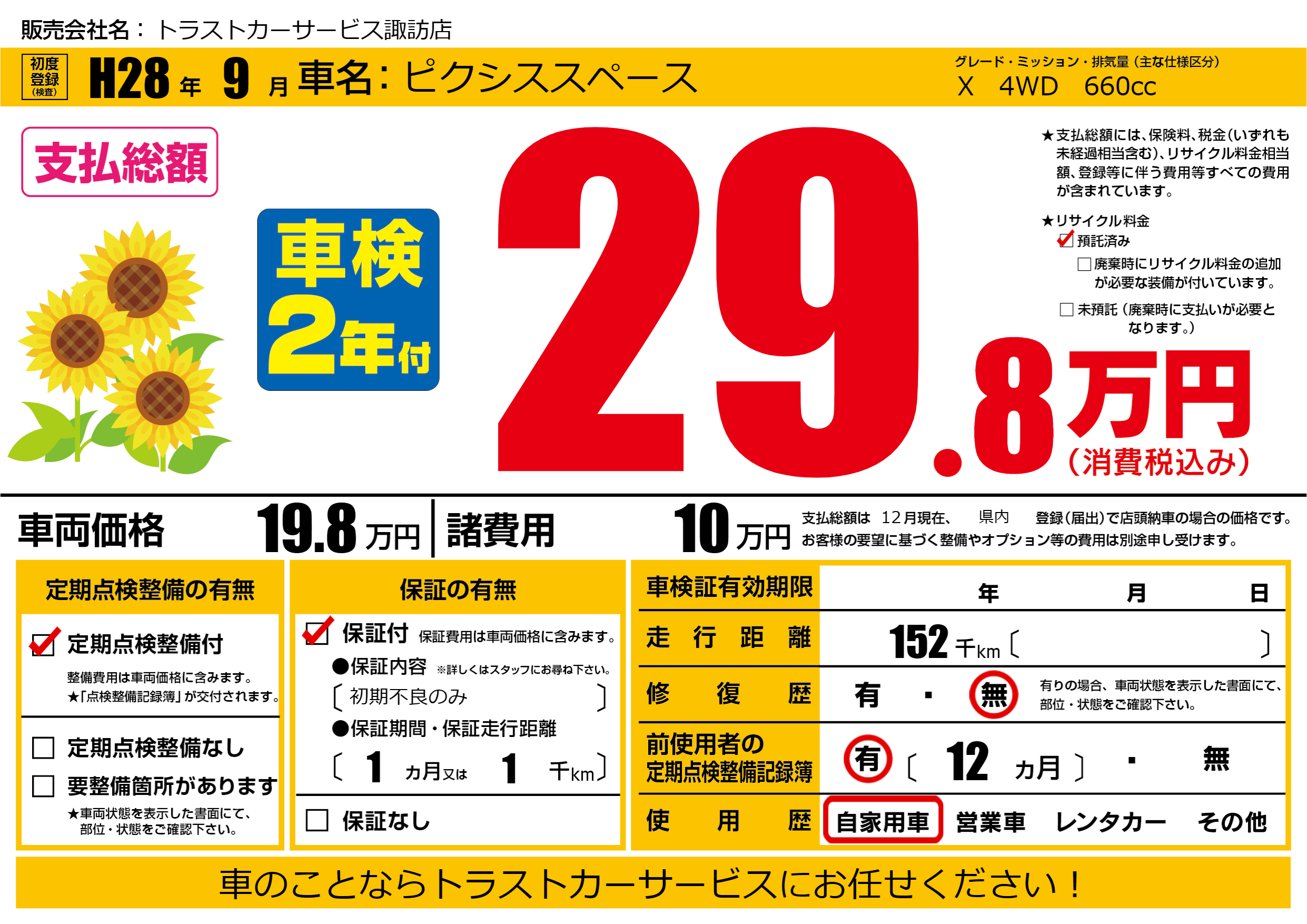 定期点検整備 | 定期点検整備あり |