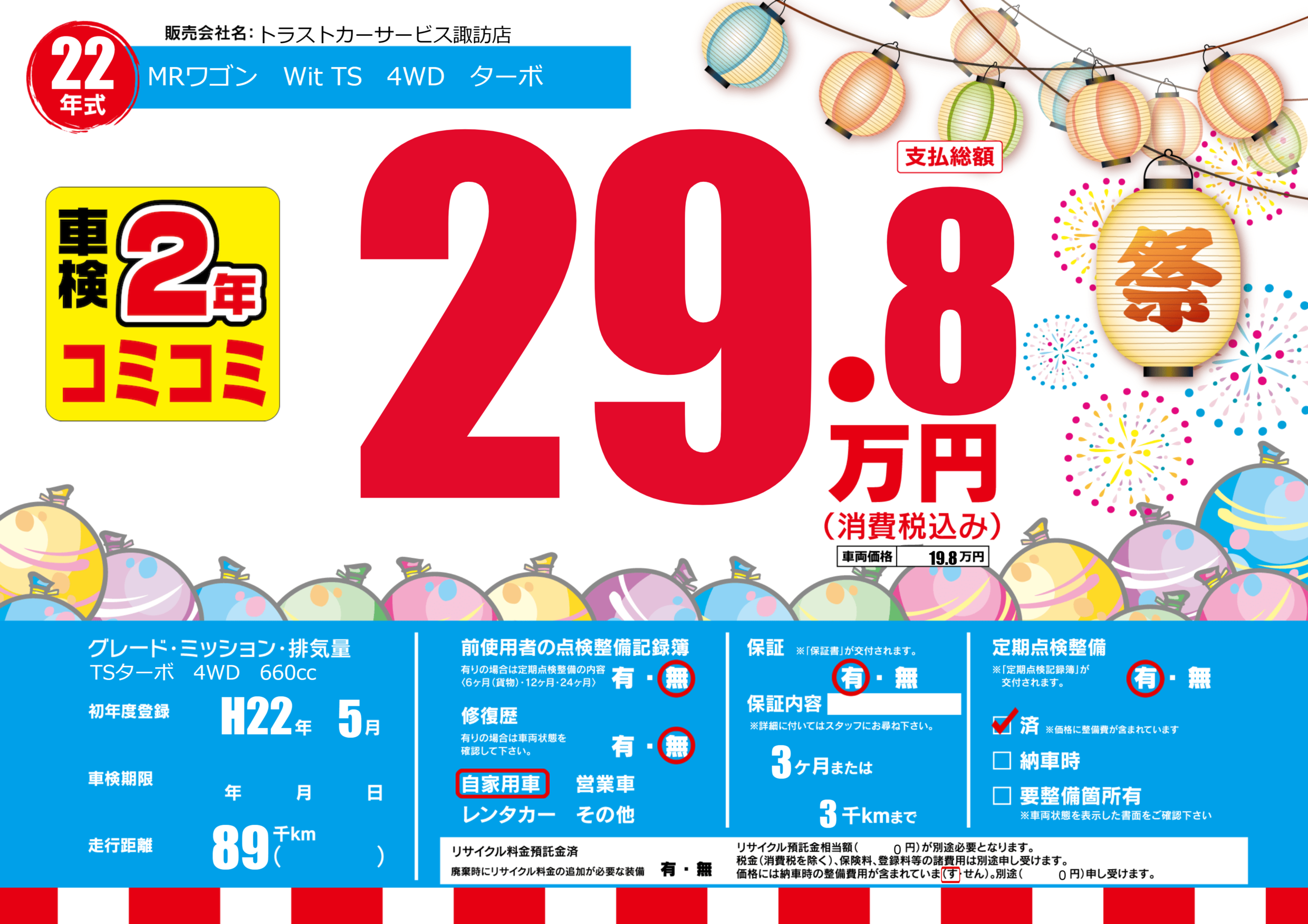 | 定期点検整備 | 定期点検整備あり 定期点検整備済み | ||