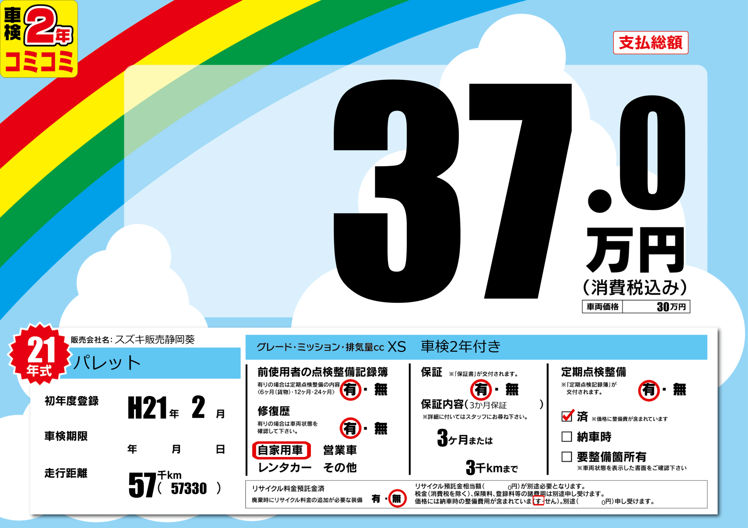 | 定期点検整備 | 定期点検整備あり 定期点検整備済み | ||