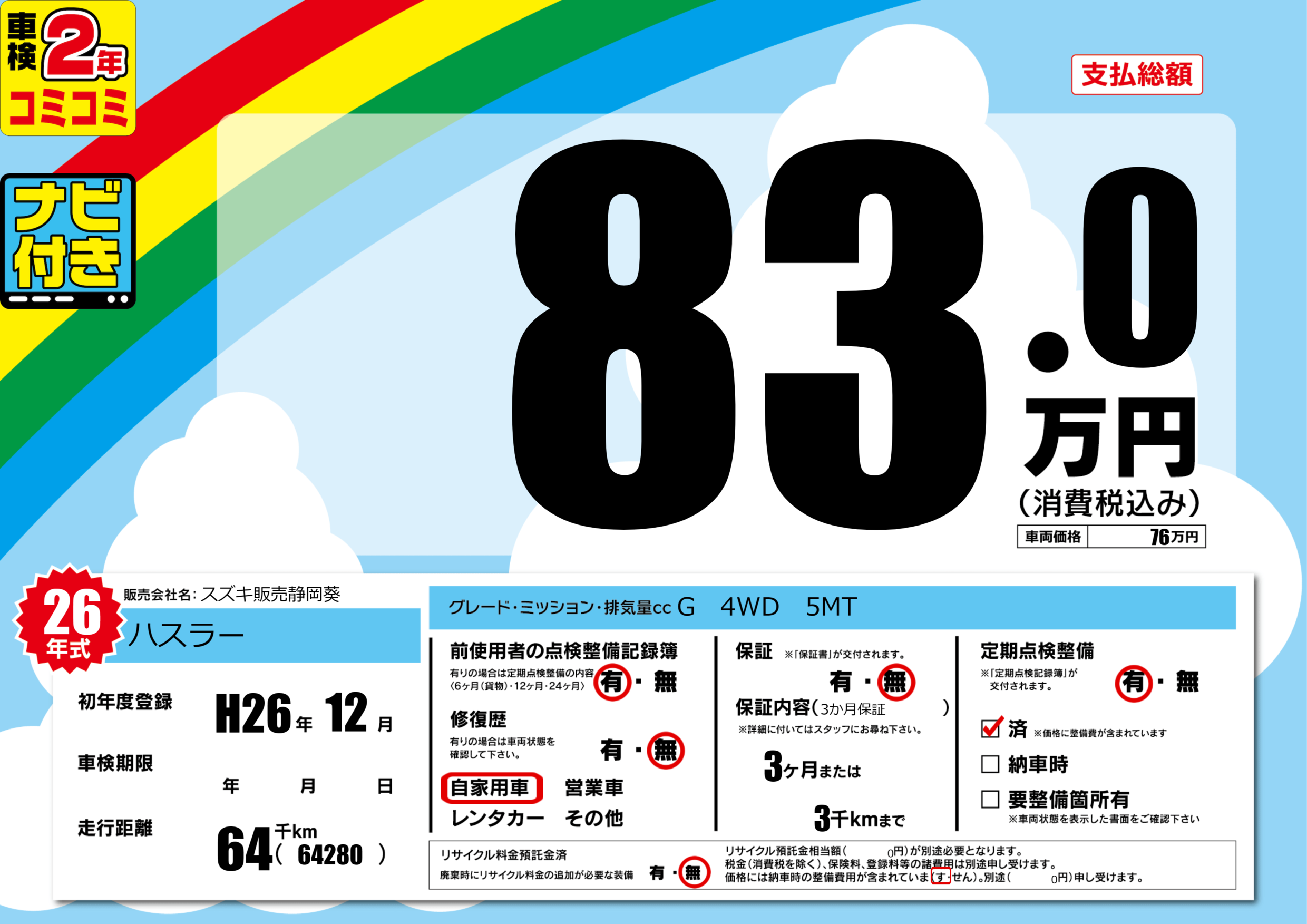 | 車名 | ハスラー | グレード ミッション 排気量 |