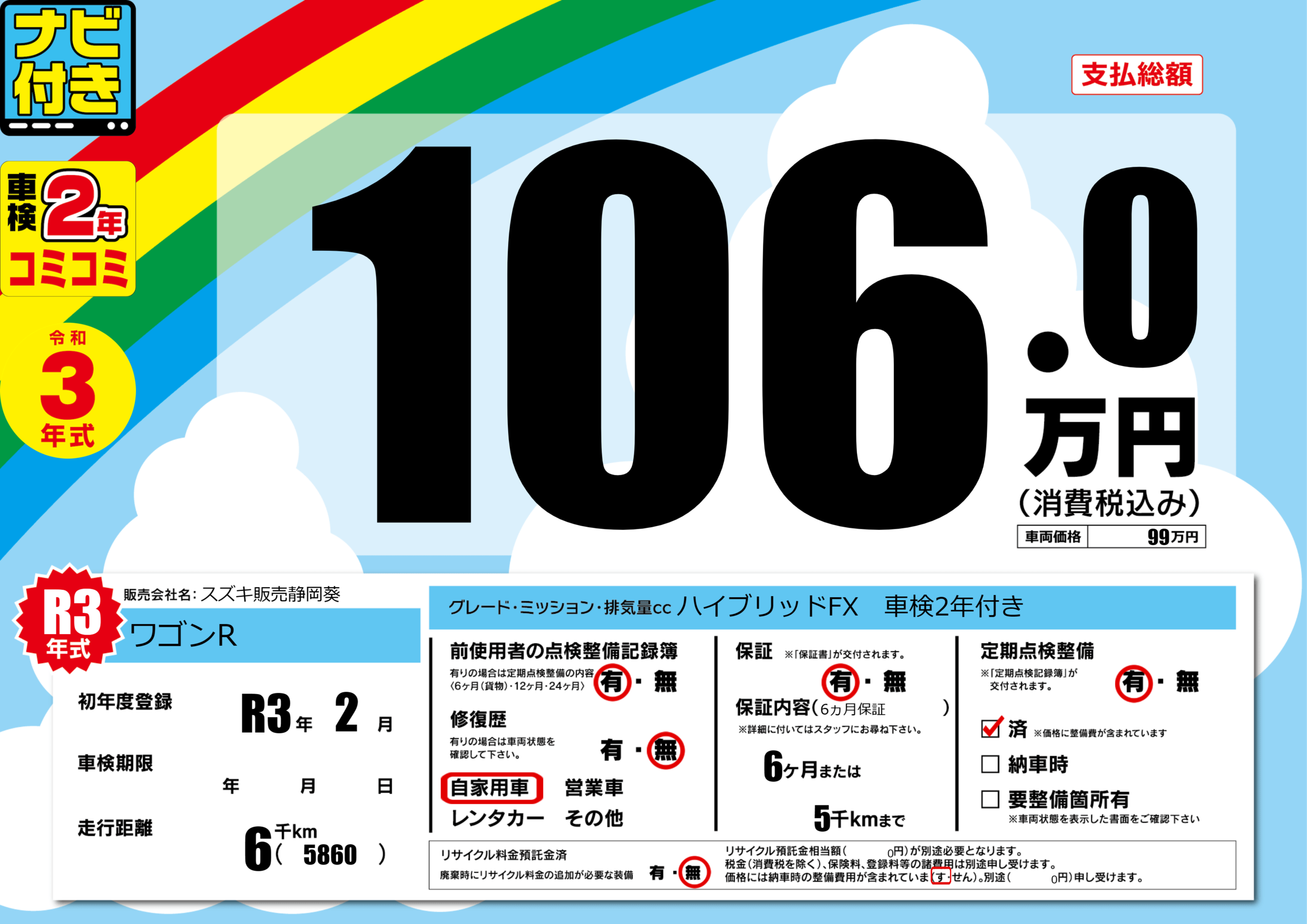 | 定期点検整備 | 定期点検整備あり 定期点検整備済み | ||