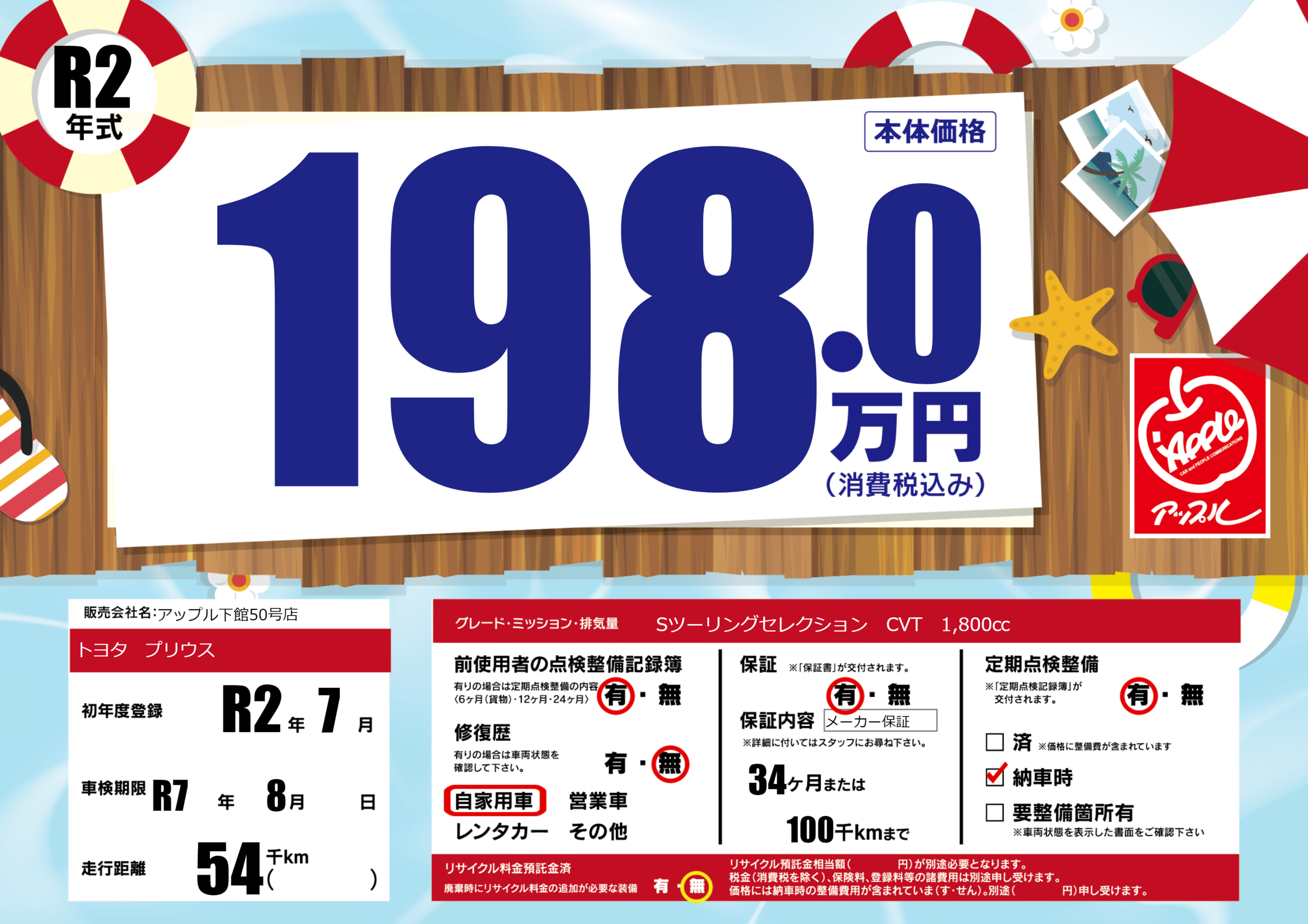 | 車名 | トヨタ プリウス | グレード ミッション 排気量 |