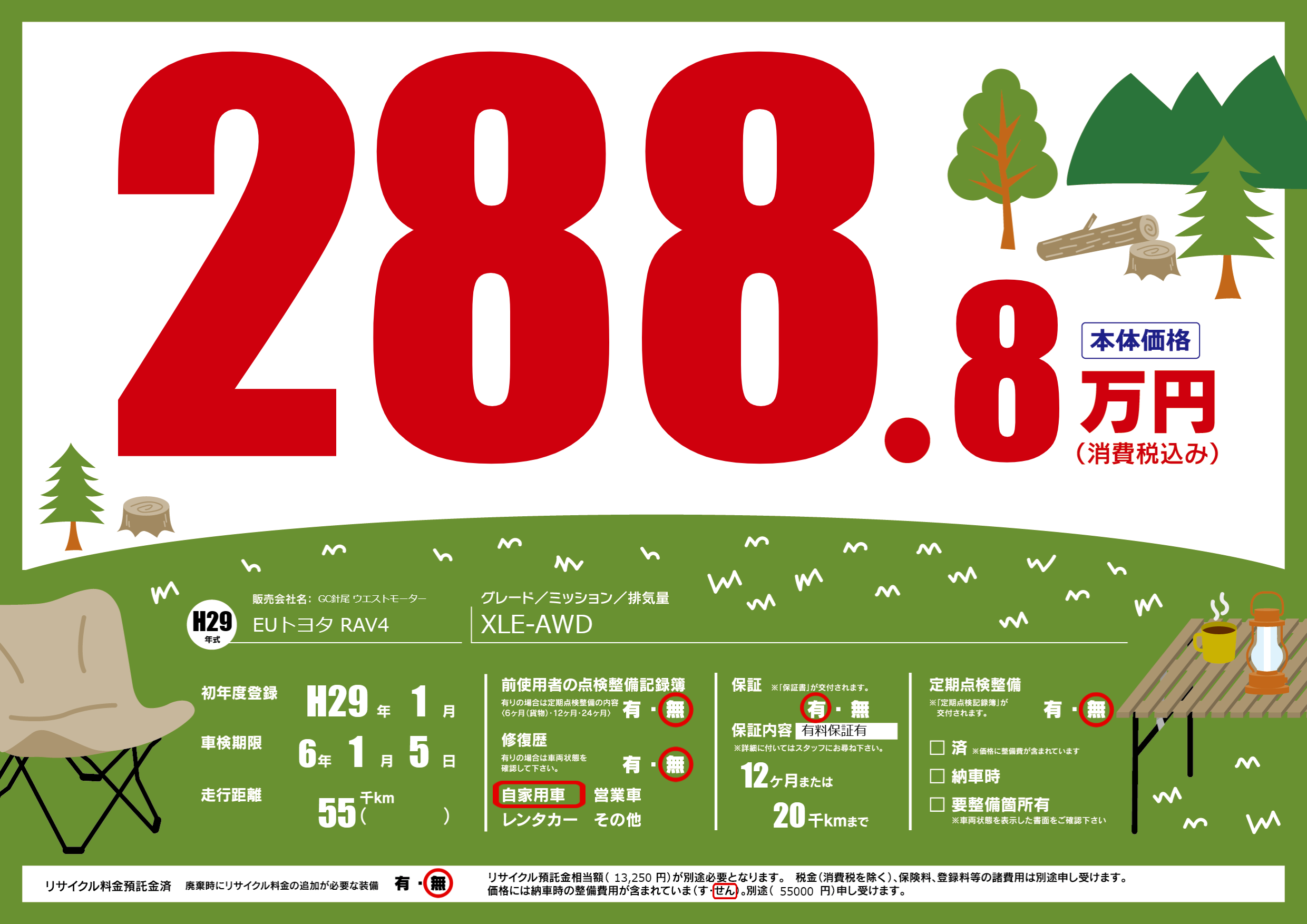 | 走行キロ | 5.5万km | 初年度登録 | H29年1月 |