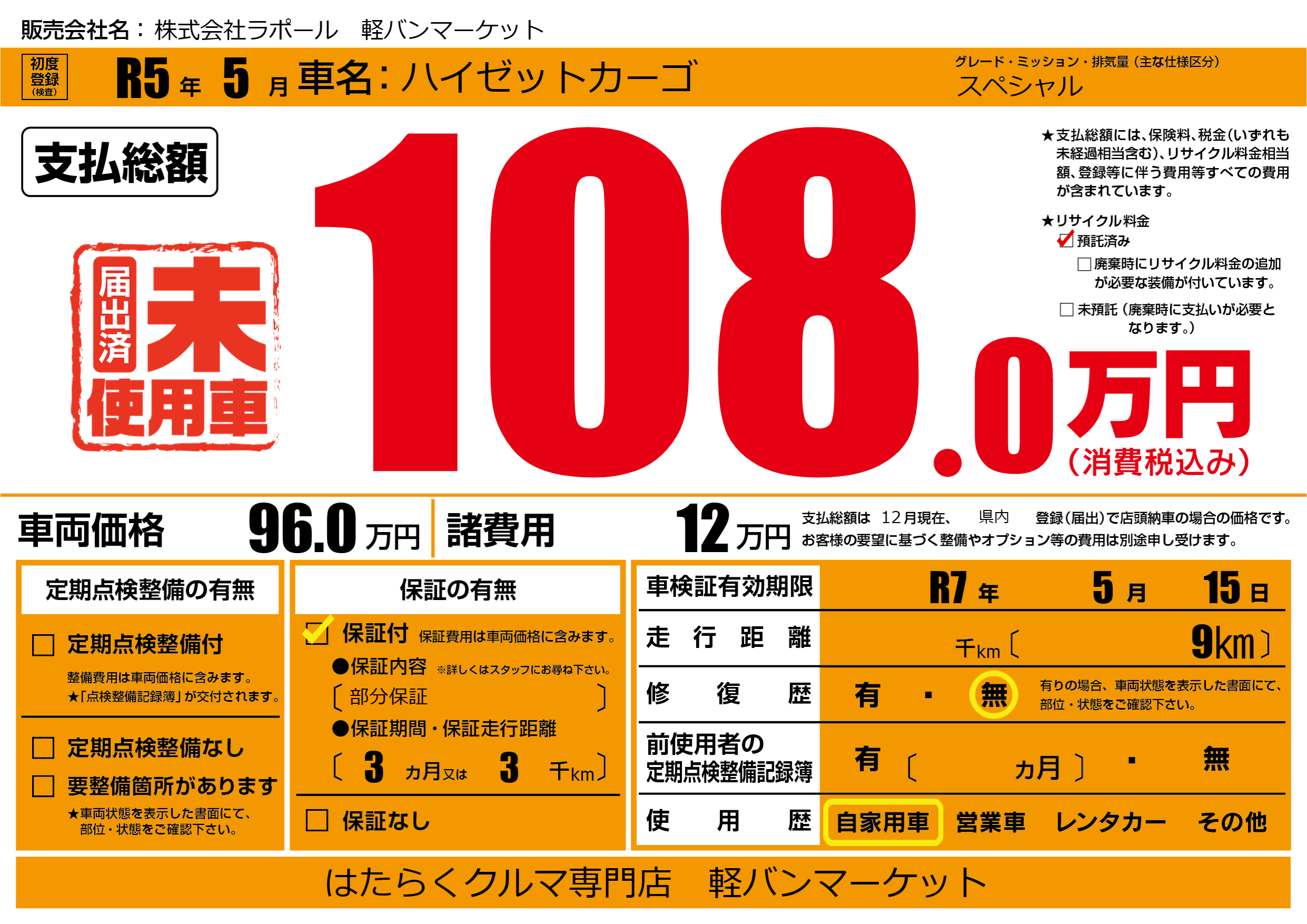 なし | 車検制限 | R7年5月15月 |