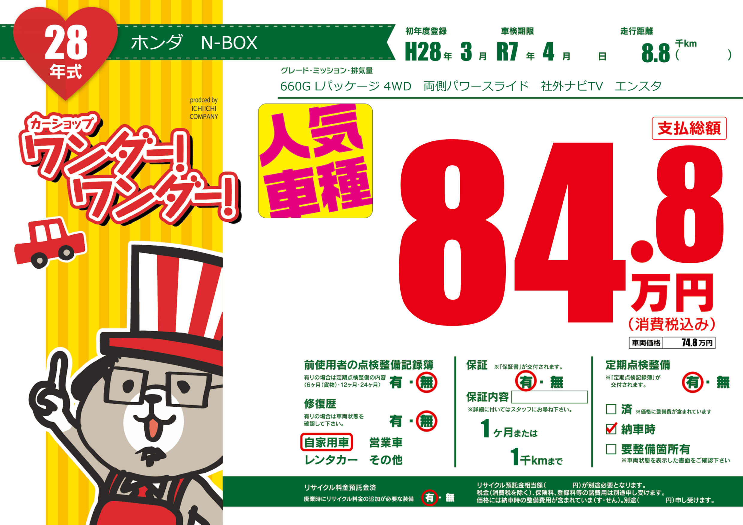 | 車名 | ホンダ N-BOX | グレード ミッション 排気量 |