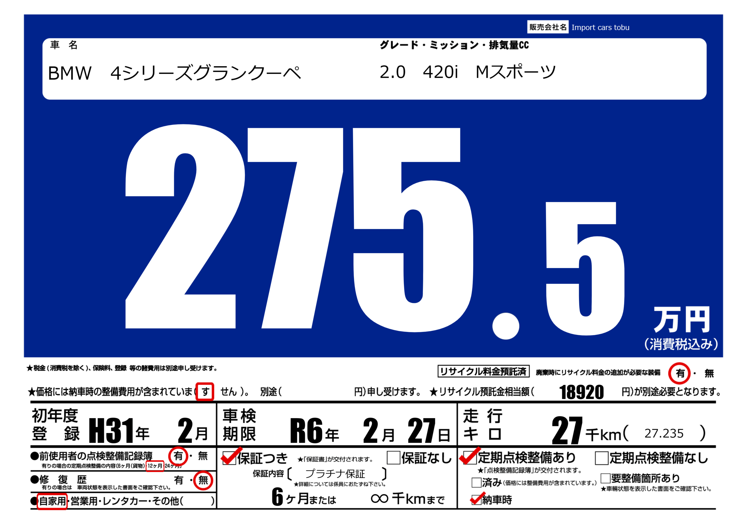 保証内容(  プラチナ保証) 6ヶ月または∞千km